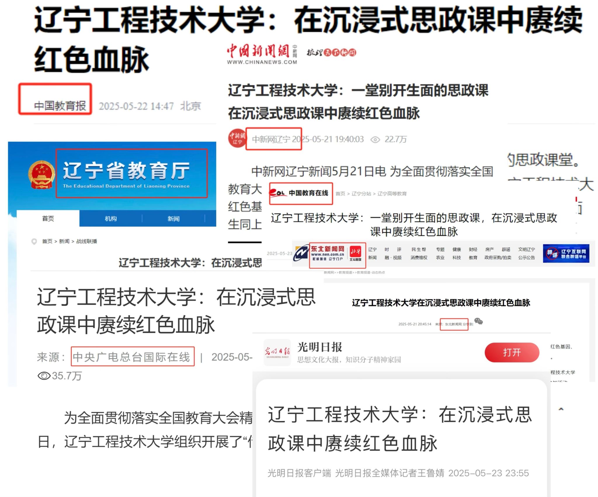 活动结束后,其独特的创意和显著的成效吸引了众多媒体目光。《光明日报》客户端、中央广电总台国际在线、中国教育报、中国新闻网、学习强国等央级媒体,以及辽宁省教育厅官网、东北新闻网、辽宁北方频道、北斗融媒等多家省级媒体,纷纷通过图文、视频等多种形式,对活动进行全方位报道。这些报道充分展现了辽宁工程技术大学在加强大学生思想政治教育和大思政课建设方面的积极探索与良好效果,进一步提升了学校的社会影响力,也为同类活动开展提供有益借鉴。
