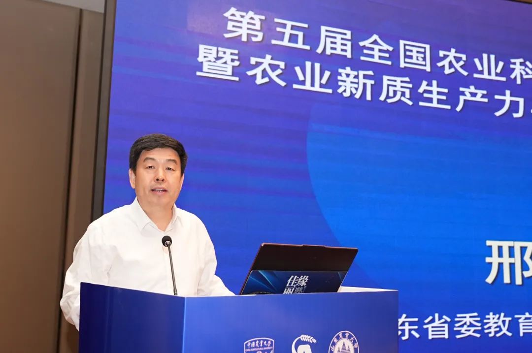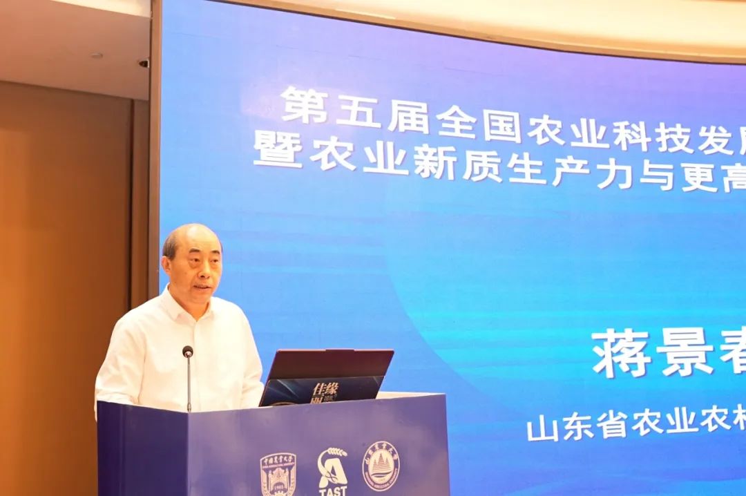 蒋景春在致辞时代表山东省农业农村厅向多年来一直关心支持山东农业农村工作的各位领导、专家表示衷心感谢,并介绍了山东发展现代农业、乡村全面振兴等情况。他说,近年来,山东深入贯彻落实习近平总书记重要指示讲话精神,锚定“走在前、挑大梁”,坚决扛牢农业大省、粮食大省责任担当,落实农业农村优先发展要求,持续加快现代农业强省建设。蒋景春表示,山东农业大学历史悠久、底蕴深厚,多年来为我国特别是山东省农业农村人才培养、新品种培育、农业技术创新发展等方面作出了突出贡献。希望以此次会议为契机,各方与山东农业大学一道,同向发力、同题共答,共谱科技助力农业新质生产力发展“一首曲”,共创建设更高水平“齐鲁粮仓”“一首歌”,为端稳端牢中国饭碗作出新的更大贡献。