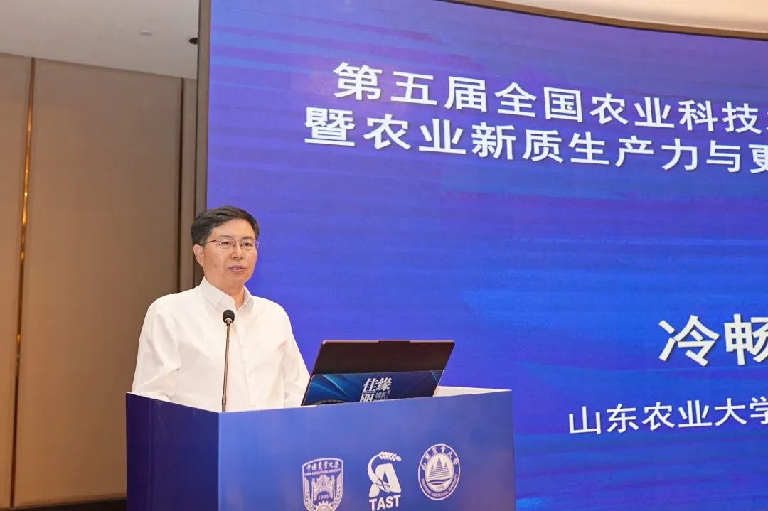 冷畅俭在致辞时代表学校向莅临会议的各位领导、专家学者和业界同仁表示欢迎,向长期以来关心支持学校发展的各级领导致以衷心感谢,并介绍了山东农业大学办学历程和近年来取得的成绩。他说,近年来,学校紧紧围绕“冲一流”建设和一流农业大学的奋斗目标,在中国农业大学的对口帮扶下,构建协同创新矩阵,打造粮仓建设“强引擎”;聚焦国家重大战略需求,建设沿黄农业产业高等研究院,培育增产增效“新动能”;把握立德树人根本任务,深耕教育教学改革沃土,打造强农兴农“新支点”,坚决扛牢扛稳守护粮食安全重任。希望以此次大会为契机,共同谋划“十五五”农业农村科技发展的战略蓝图,全面深化与兄弟高校、科研院所的协同创新,为加快打造现代农业领域人才集聚高地,共同为建设更高水平粮仓和教育、农业强国强省建设作出新的更大贡献。