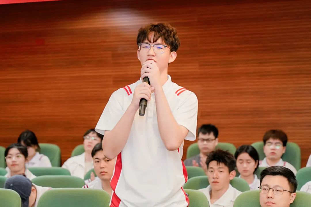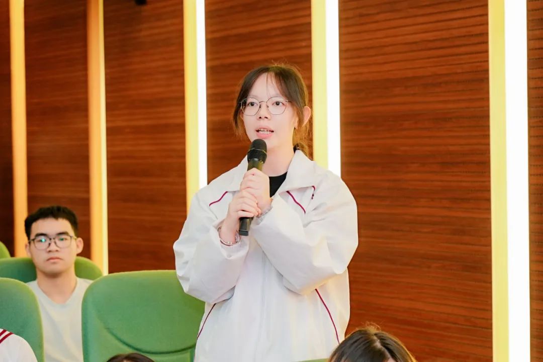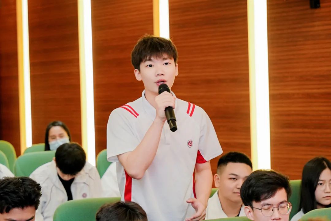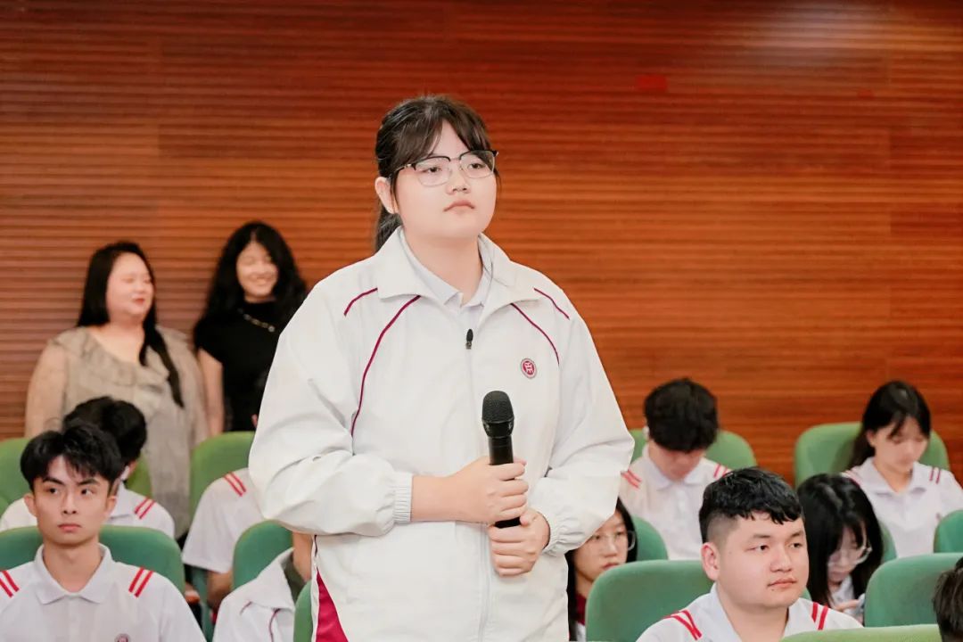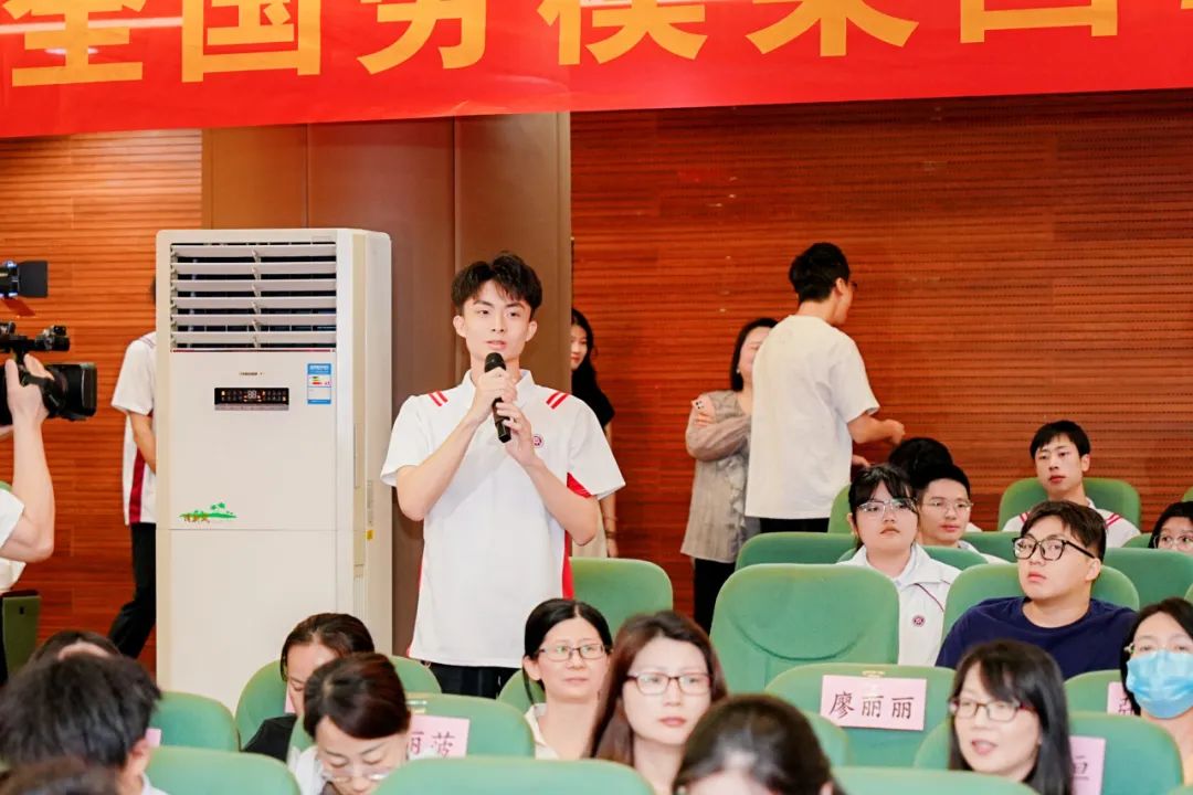 “与全国劳模面对面”现场互动问答环节中,学生们纷纷举手提问,就学业规划、职业发展、人生选择等方面与廖志略进行了深入的交流。廖志略耐心细致地一一解答,现场气氛热烈而温馨。