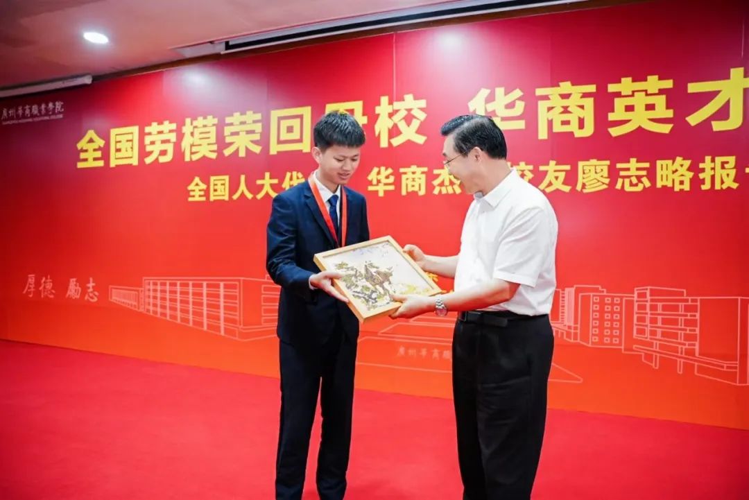 卢坤建校长指出,此时此刻,华商科教集团倍增荣光,廖志略校友的卓越成绩,践行了华商科教集团创百年名校、育华夏英才的崇高目标;此时此刻,广州华商职院倍感骄傲,廖志略校友的成就,践行了我们塑造产业领袖人格,培养创业行为习惯的职教使命;此时此刻,全体师生倍觉自豪,作为“类型教育”的职业院校,我们的老师能够培养出廖志略式的学生,我们的学生以廖志略式的成长路径成才,这对于我们办学使命的践行无疑是一次鼓舞。