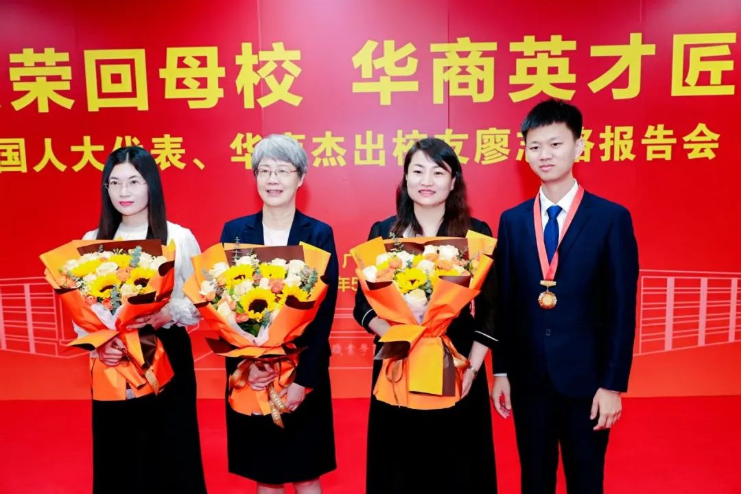 演讲结束后,廖志略校友手捧鲜花,向一直以来给予他悉心教导与无私支持的恩师献上特别的敬意。