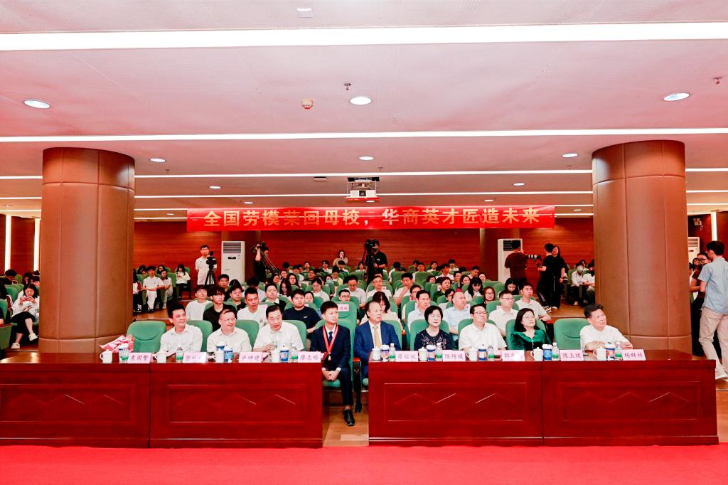 今天,我们怀着无比喜悦和激动的心情,在华商校园,隆重举行全国五一劳动模范、杰出校友廖志略荣返母校报告会,这不仅是一次荣耀的相聚,更是一场华商学子以奋斗书写时代答卷的精神盛宴!在此,我向志略校友致以崇高的敬意和诚挚的祝贺!祝贺你从全国人大代表到“全国劳动模范”的双重加冕!你以职教生的身份登上国家荣誉之巅,向世人证明了:职业教育,是成就人生的星光大道;技能报国,是时代赋予青年的壮丽征程;华商职院,是培育强国人才的沃土和摇篮!