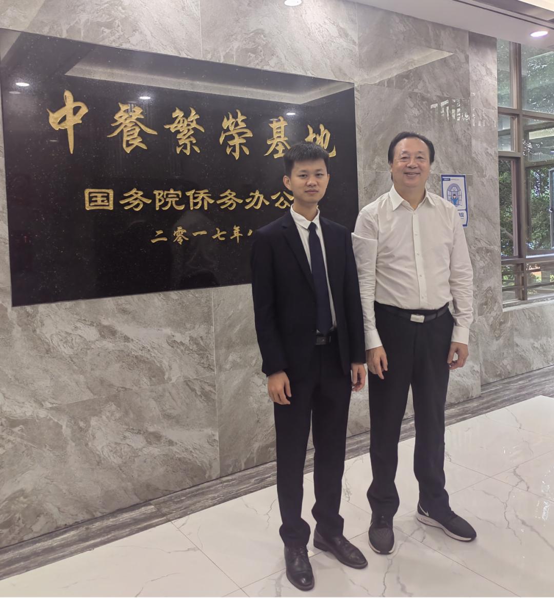 华商科教集团廖榕就董事长(右一)与廖志略校友(左一)