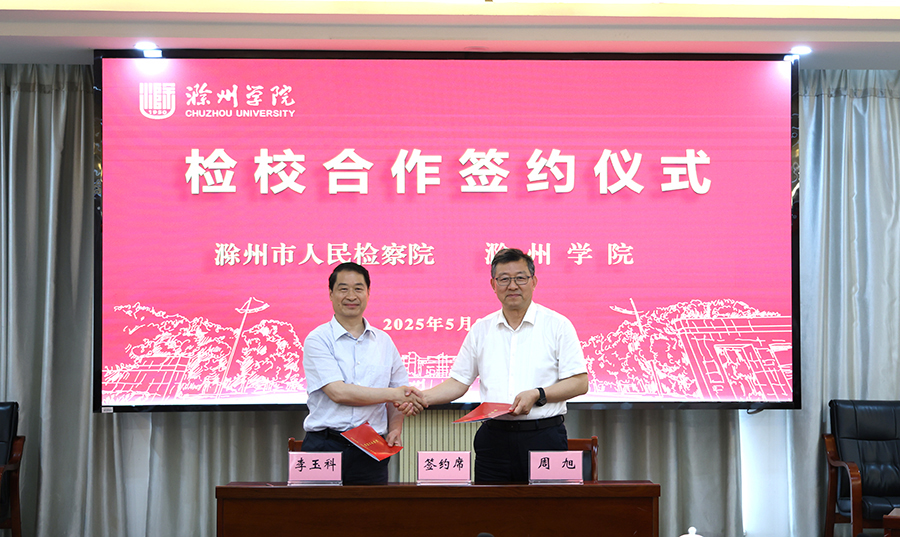 为深入贯彻习近平法治思想和习近平总书记关于教育的重要论述,认真落实《最高人民检察院 教育部印发关于加强新时代检察机关与高等学校合作的意见的通知》精神,5月21日,学校与滁州市人民检察院举行检校合作协议签约仪式。滁州市人民检察院党组书记、检察长李玉科,党组成员、副检察长雍自明,校党委书记周旭,党委常委、副校长陈桂林出席签约仪式。仪式由陈桂林主持。