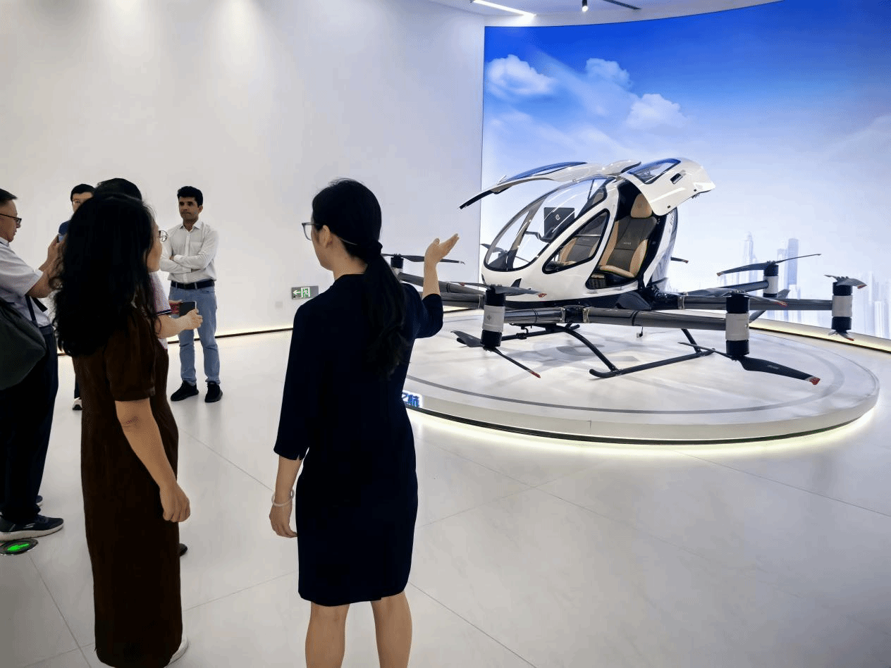 陈晓晖书记一行参观了亿航智能展厅,深入了解亿航智能的发展历程及产业布局,了解空中交通、智慧城市管理和空中媒体等应用领域前沿技术。
