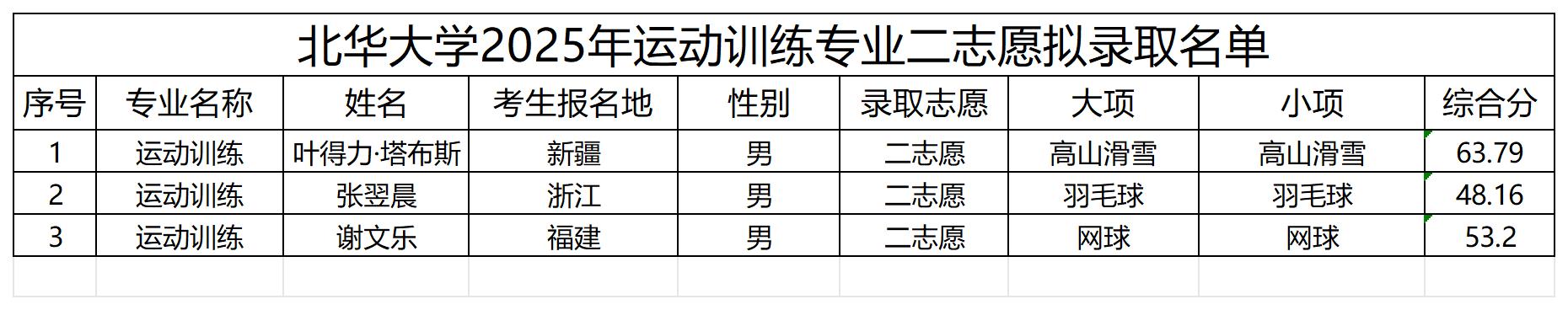 正式录取名单以教育部、国家体育总局及各省招生考试机构审核通过为准。