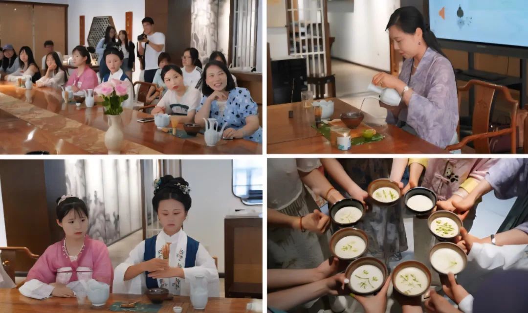 活动现场,国际教育学院特别邀请国家高级茶艺技师肖林梅老师进行宋代点茶技艺教学。在古琴悠扬的乐声中,肖老师展示注水、击拂、勾勒等点茶技法,行云流水般的动作再现传统茶艺的优雅神韵。随后,她以通俗的语言结合趣味问答,系统讲解茶文化历史脉络,让同学们深入了解宋代点茶的文化内涵。在实践环节,大家手持茶匙,在茶汤泡沫上创作图案,沉浸式体验宋代点茶雅趣,现场气氛温馨,师生们在茶香氤氲中交流心得、分享体验。活动结束后,同学们纷纷表示,这次体验不仅让他们领略到了宋代点茶艺术的精妙之处,更深刻体会到传统文化中的智慧与美感。