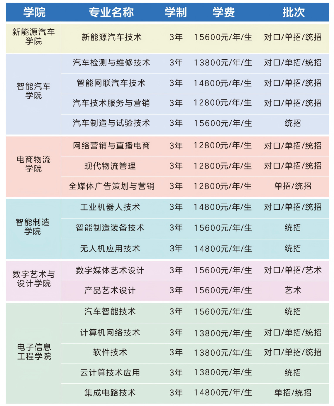 郑州汽车工程职业学院2025年招生专业学费标准