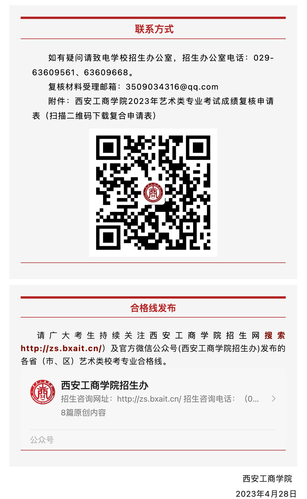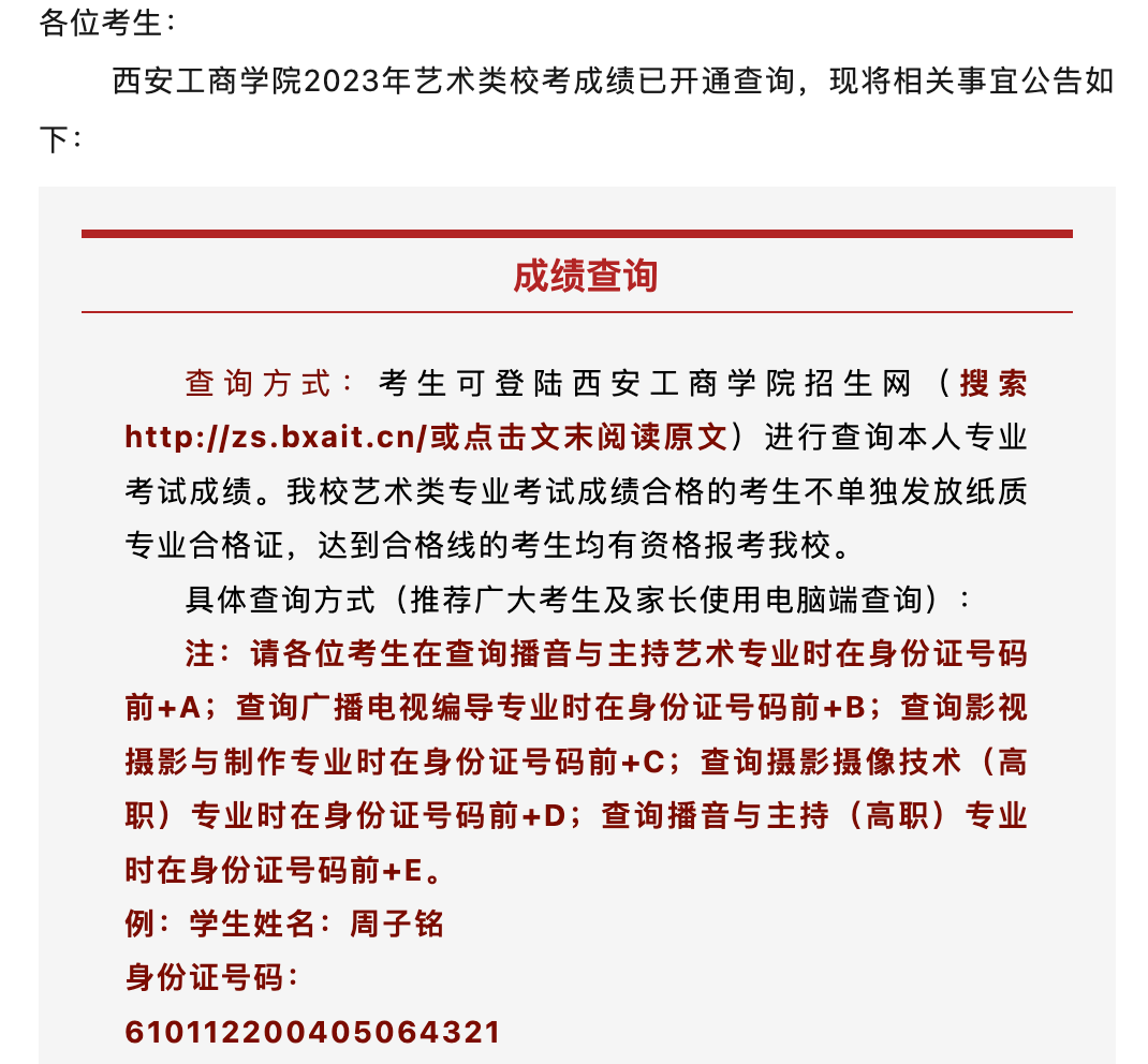 西安工商学院2023年艺术类专业校考成绩查询公告