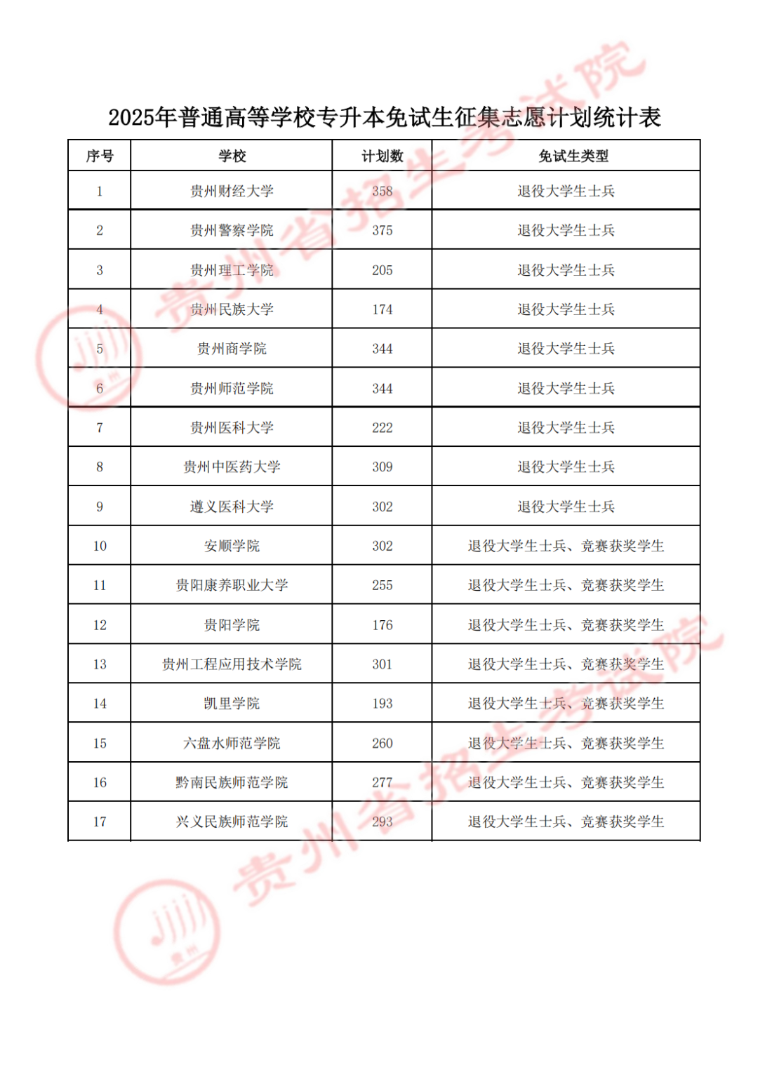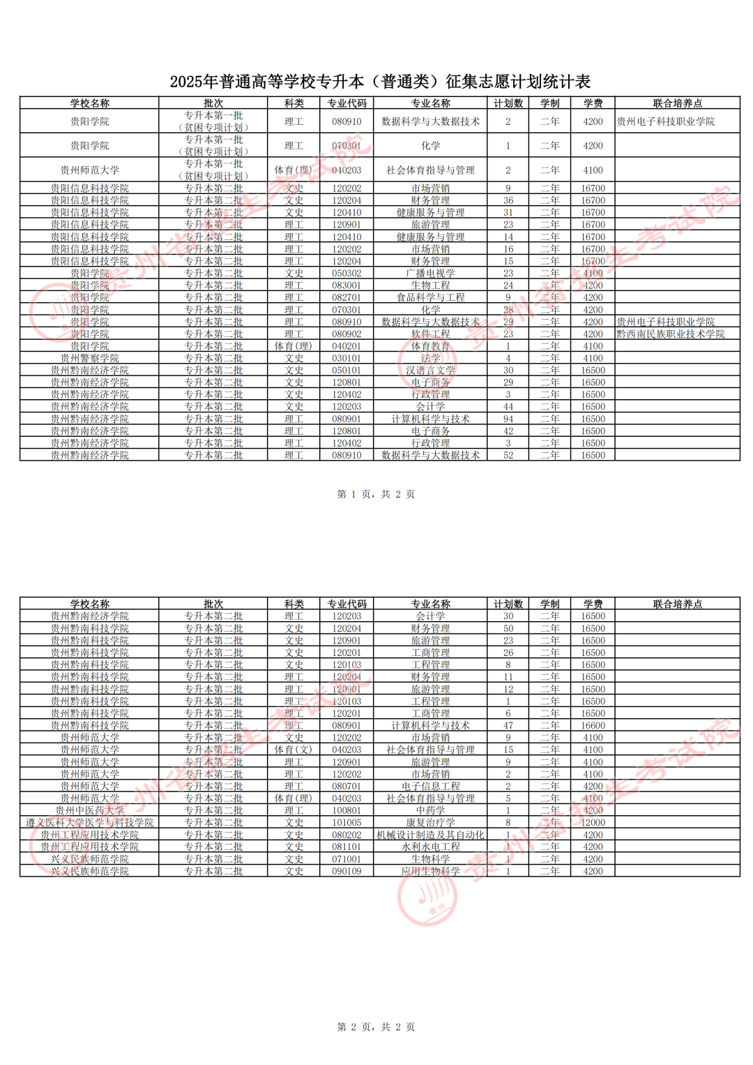 普通专升本考生征集志愿所填报的专业志愿应与参加专业考试的报考专业志愿相同;退役大学生士兵考生、竞赛获奖免试考生填报时请仔细查阅《贵州省2025年专升本本科与高职(专科)专业类对应指导目录》《贵州省2025年专升本职业本科与高职(专科)专业对应指导目录》,填报的专业须符合招生专业对毕业专业的要求。