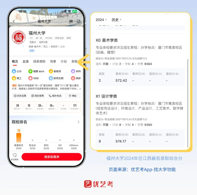 鲜为人知的是,在211工程重点大学行列中,福州大学以664人的年度招生计划,悄然摘得美术生招生规模桂冠,远超东华大学(招生482人)、江南大学(招生475人)等传统艺术强校。今年想要报考福州大学的美术生,和优艺考一起来看看,填志愿的时候有用。
