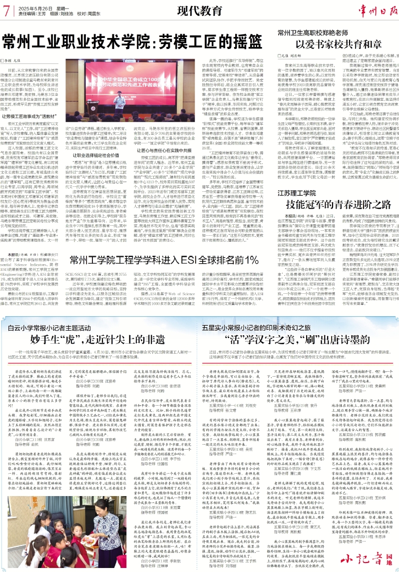 常州日报·现代教育:常州工业职业技术学院:劳模工匠的摇篮