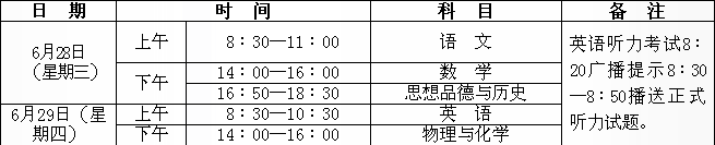 3.考试时间:2017年全省统一的初中毕业学业考试时间为6月28日至29日。各科具体考试时间(北京时间)如下