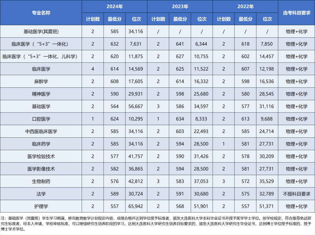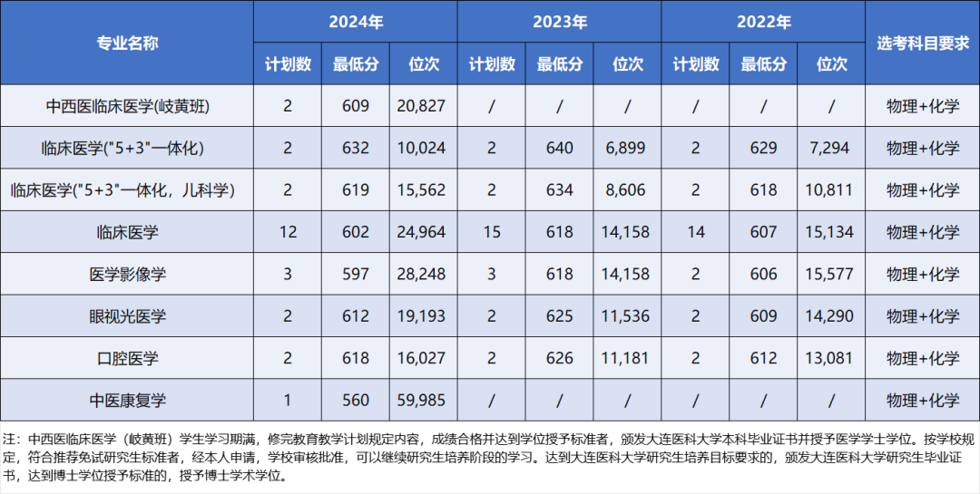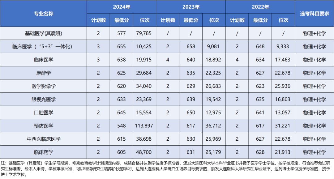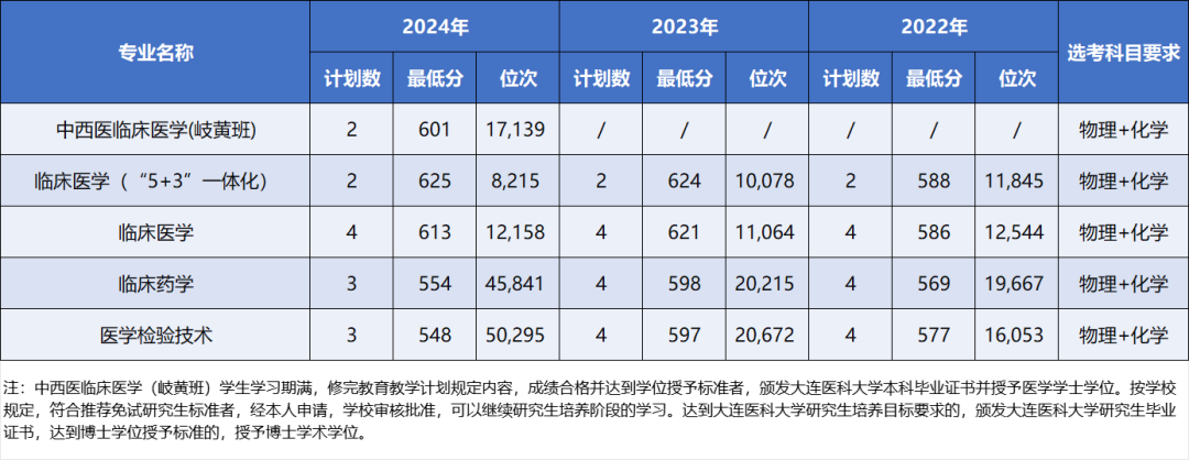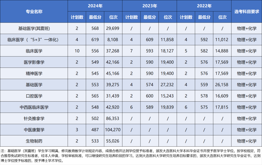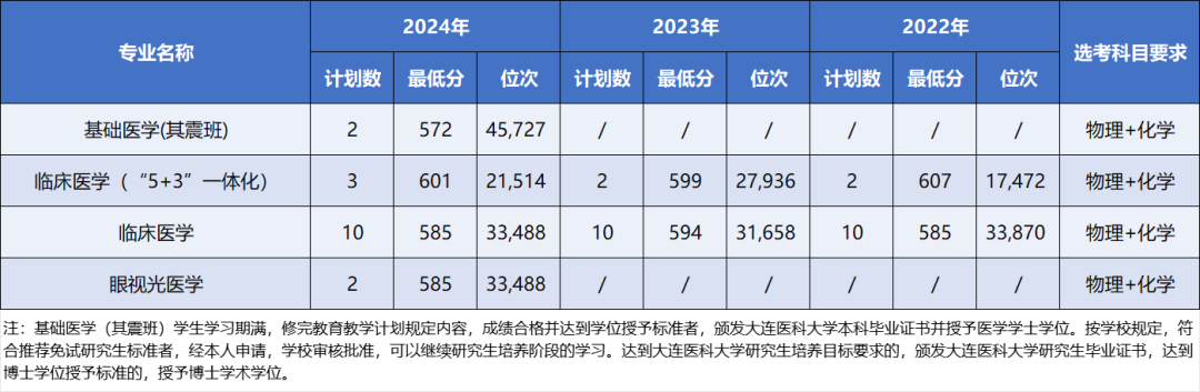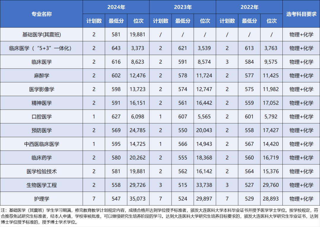 一键收藏 | 大连医科大学近三年本科录取分数及位次情况