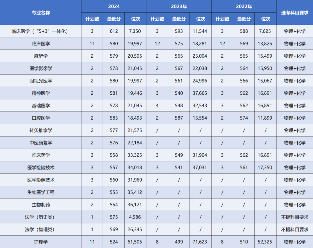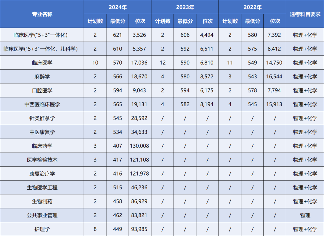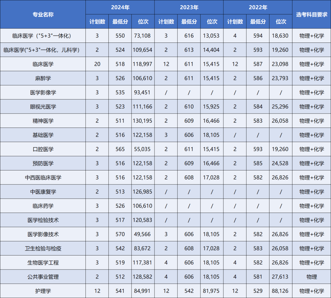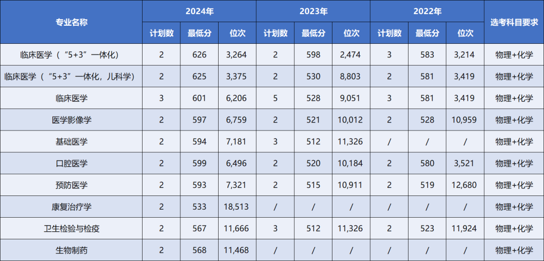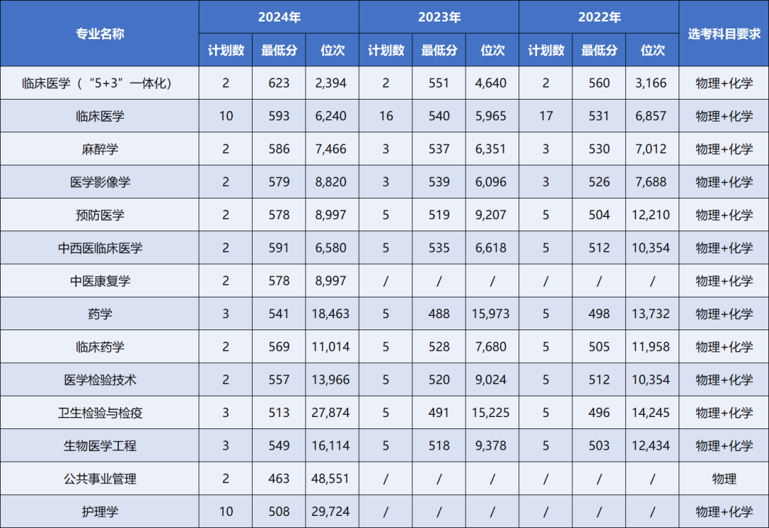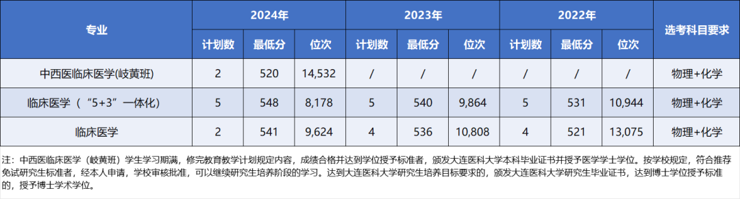 一键收藏 | 大连医科大学近三年本科录取分数及位次情况