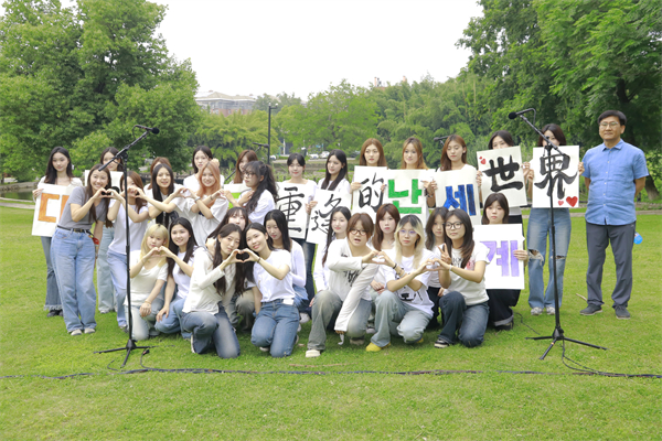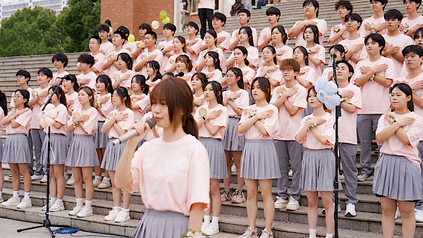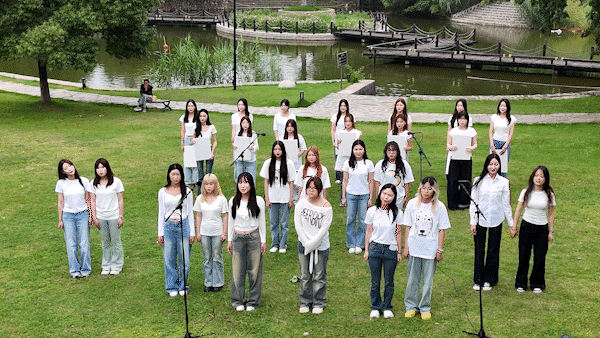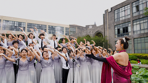钢琴声缓缓键入,韩瑞大学交换生与我校学生代表合队在人工湖畔,跨越语言、空间和文化的界限,用深情歌声诉说,“武设,是我们《再次重逢的世界》。”
