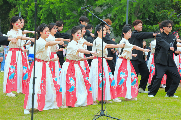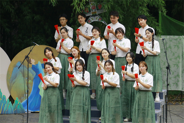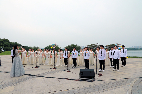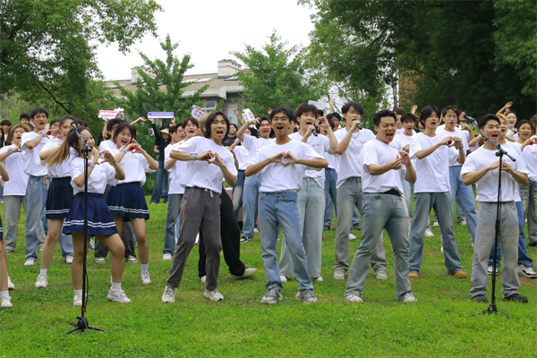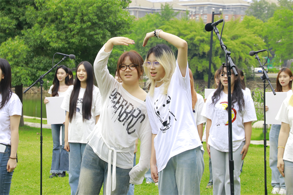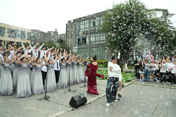 荷花池边,文化创意管理学院的歌声正“乘着风飞过来”,满溢着无畏与豪迈,他们披荆斩棘,逐梦天涯,奔赴“星辰与大海”。