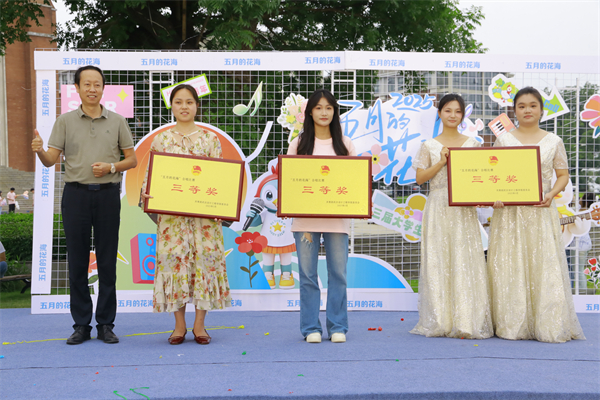 经评委评审,环境设计学院、成龙影视传媒学院获“五月的花海”合唱比赛一等奖,二等奖则被公共艺术学院、时尚设计学院收入囊中,文化创意管理学院、食品与生物科技学院与亚心护理学院合队、智能工程学院获三等奖,寻音合唱团、韩瑞大学交换生与我校学生代表合队获“最佳表演奖”。成龙影视传媒学院还斩获“最佳人气奖”。