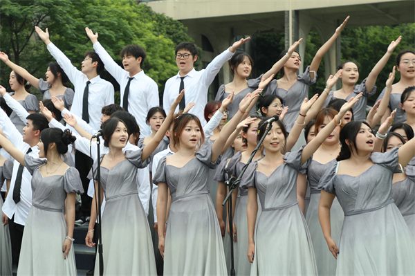 时尚设计学院用歌声向祖国“告白”。骆雨琴 周佩 摄