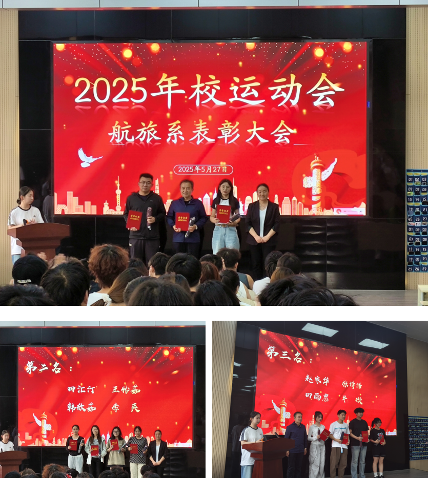 5月27日下午,航旅系2025年校运会表彰大会在激昂的氛围中拉开帷幕,全面回顾航旅健儿在校运会中的精彩表现,并对获奖师生进行表彰。