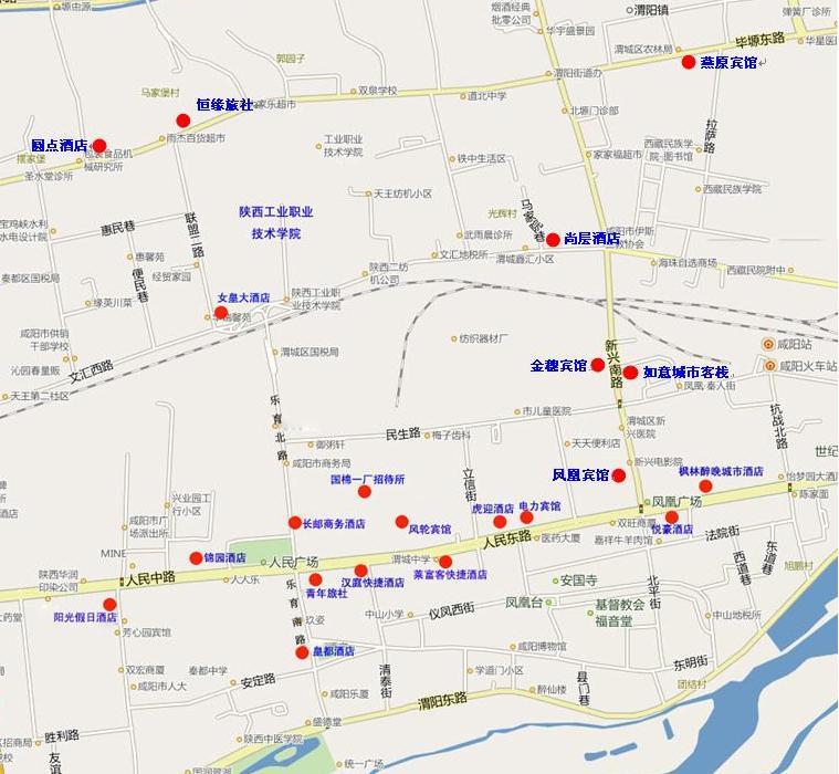 5 | 虎迎酒店 | 人民东路38号 (渭城中学对面) | 标准间138,单人间128 | 029-33285666 |