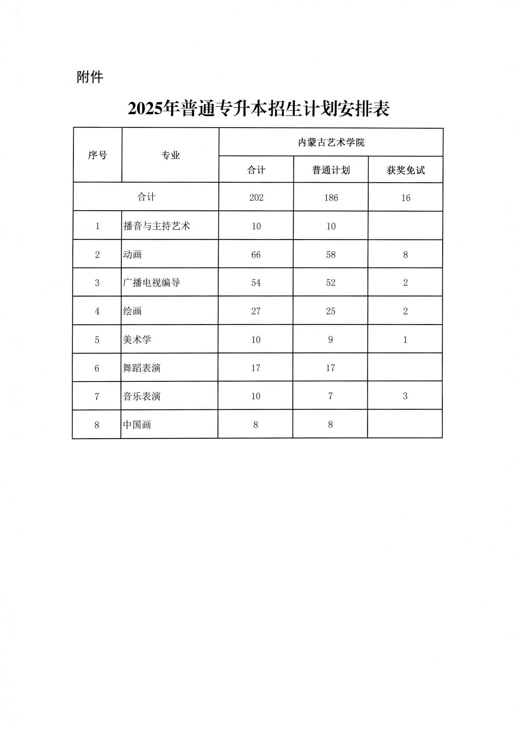 内蒙古艺术学院2025年“专升本”招生计划招生章程及招生计划