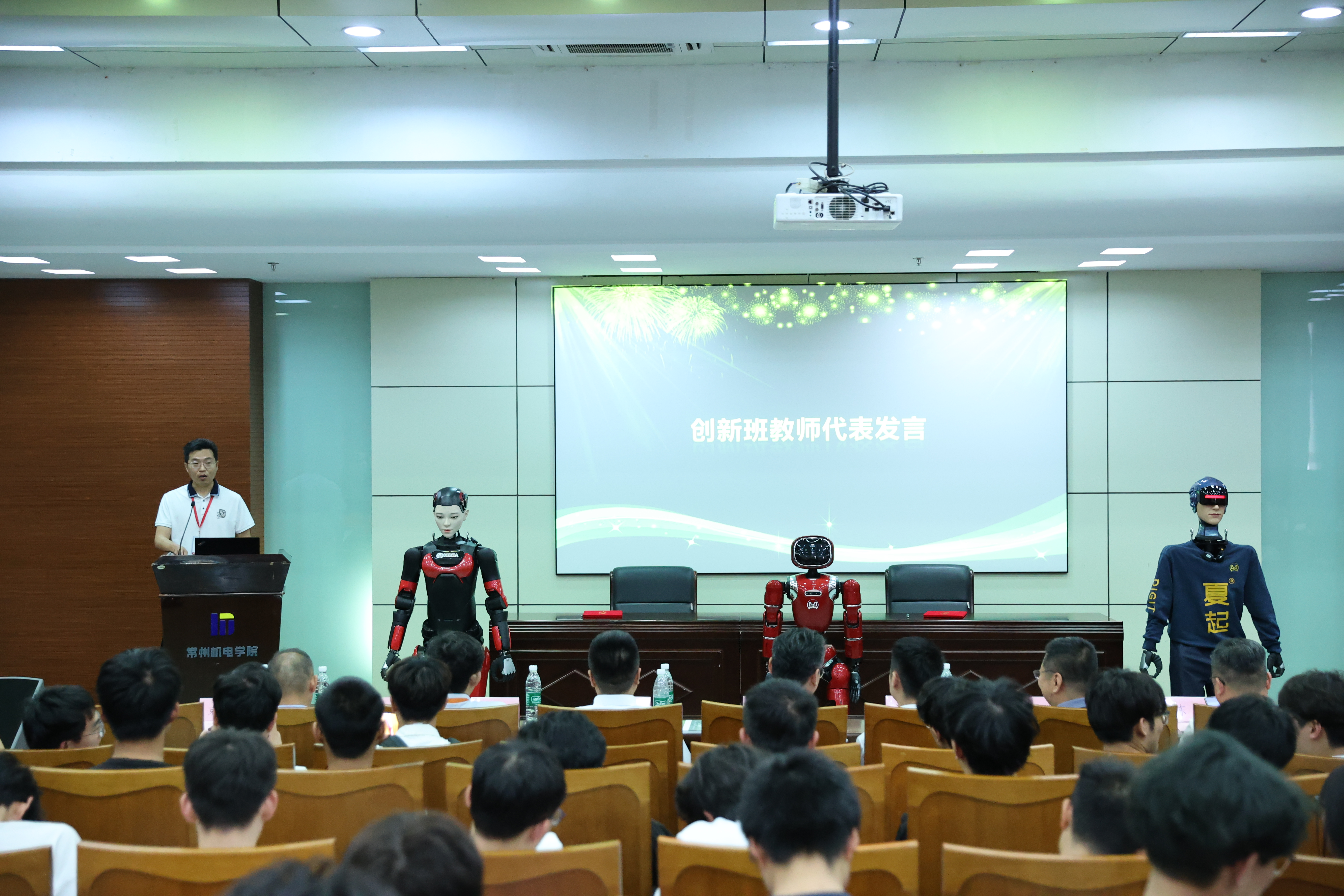 戴鹏为创新班开展《具身智能机器人在职教应用》主题讲座,并现场演示机器人互动应用方案。