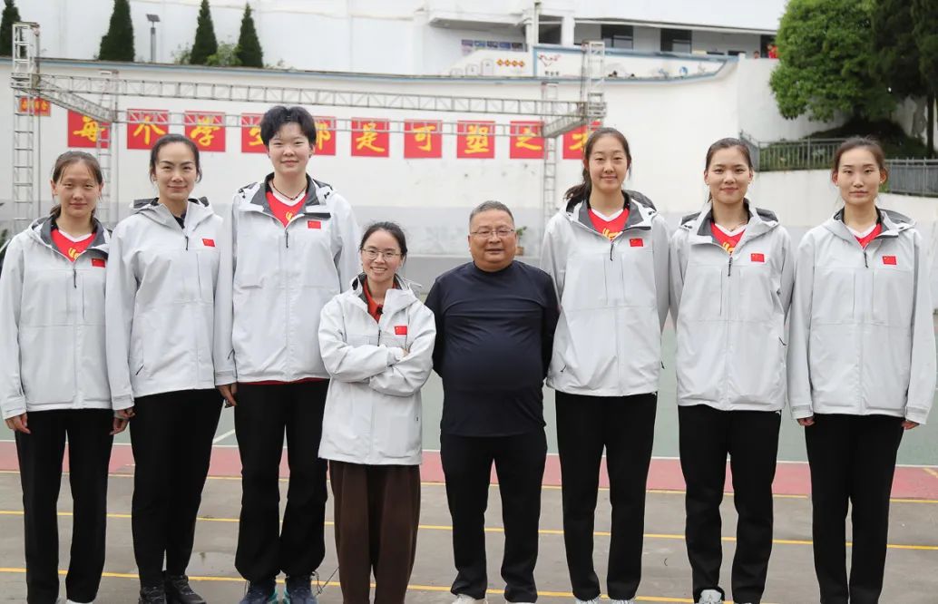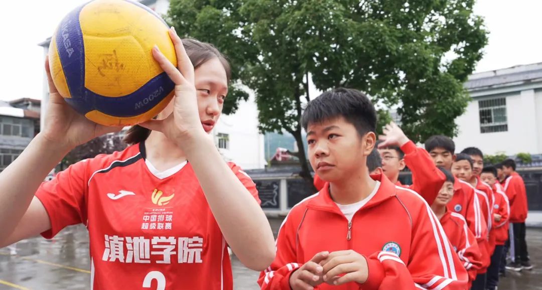 云南女排(滇池学院女排)向大关县翠华中学赠送签名排球并合影留念。