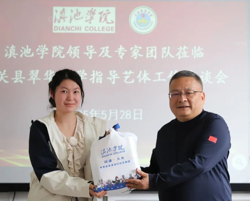 5月28日上午,在大关县翠华中学会议室召开体育美育工作座谈会。大关县教育体育局副局长杨绍恒,大关县翠华中学校长黄建书,滇池学院校长马杰一行及驻大关支教团部分师生代表参加座谈。会议由翠华中学党总支副书记刘刚主持。