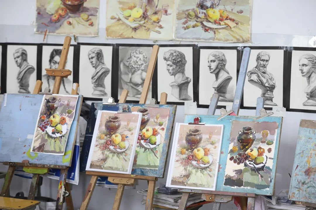 马杰校长一行先后参观学生美术教学成果作品展,对学生的美术作品给予高度肯定。