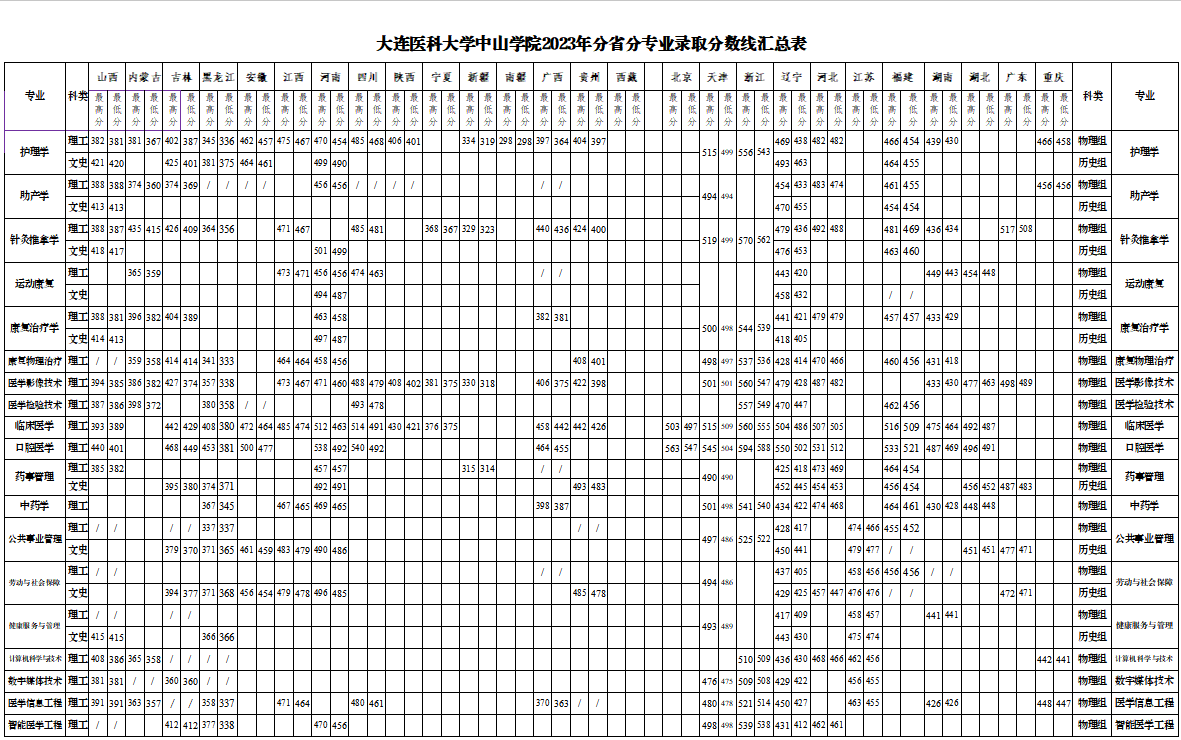2023年分省分专业录取分数线