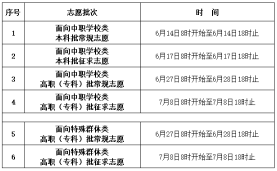 2022年高职分类招考志愿填报时间安排表(面向中职学校类和特殊群体类)