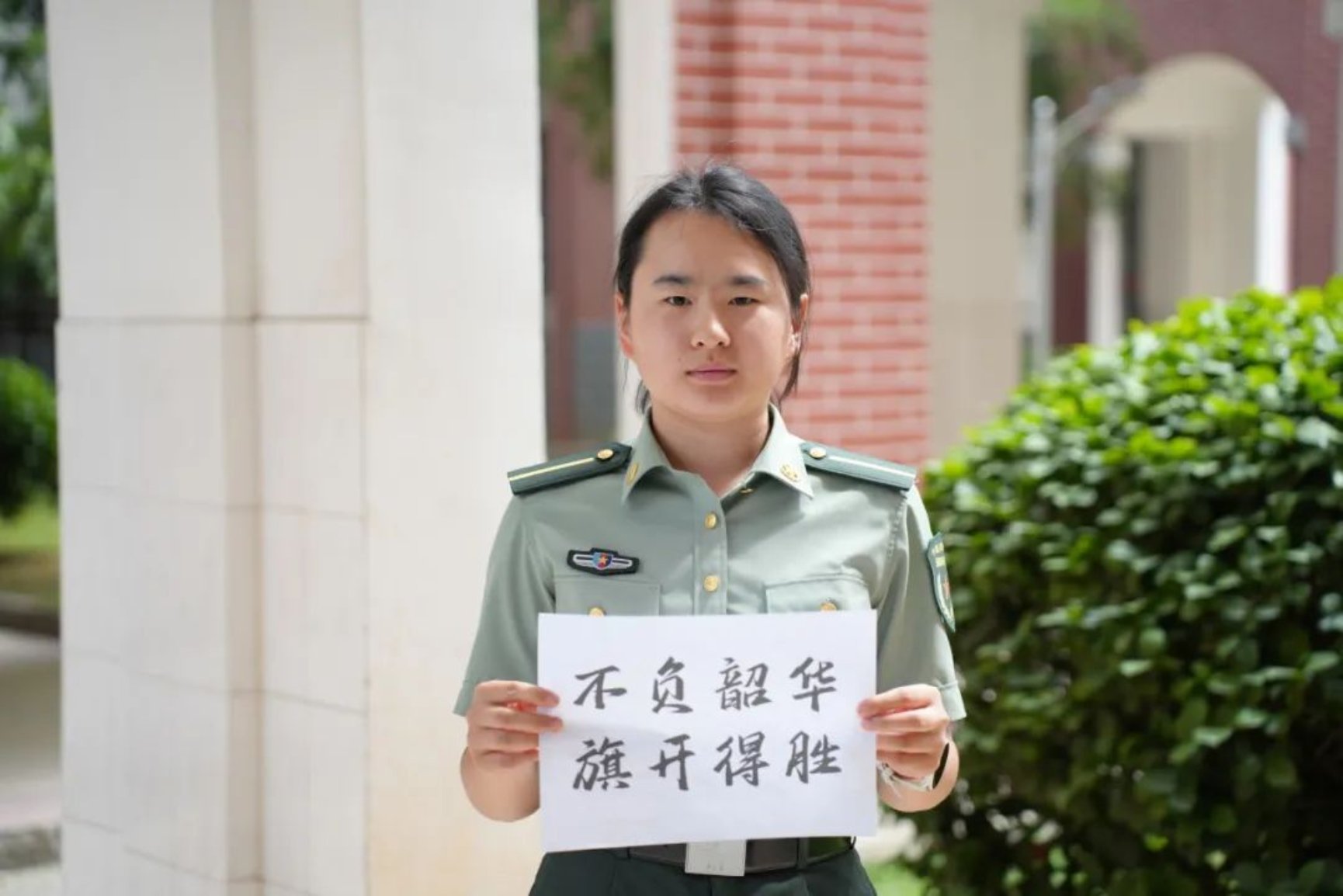 我是听我参加过抗美援朝战役的太爷爷的故事长大的,而在那个时候,报考军校、保家卫国的梦就根植在我的心中。记得在冲刺军考那段时间,刚好赶上部队驻训大西北。在一眼望不到头的大戈壁滩上,在用水都难的艰苦条件下,我仍然如初地学习。而每当我被困难击倒、精疲力竭的时候,我便会想起那些为国捐躯的将士,想起我的太爷爷在战场上中弹受伤却坚持战斗,这些都支撑着我日复一日地不断前行,我正是凭着这样一股不怕苦不怕累的韧劲,坚持到了最后。最终我以728.9分的好成绩,如愿考上了国防科技大学。