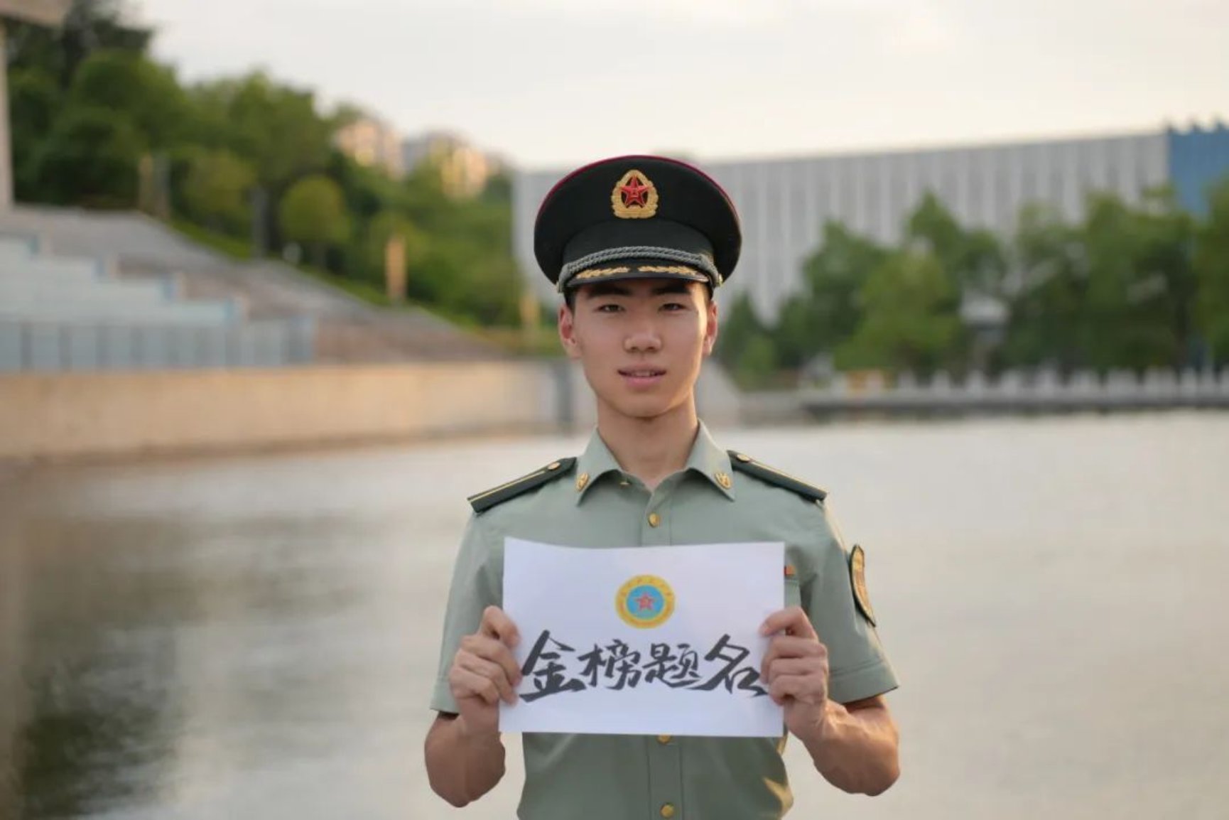 国防科技大学一直是我的目标,可惜高考时我与科大以3分之差失之交臂,所以我跟随内心的声音,毅然选择参军入伍。备战军考时我白天上班,晚上就在学习室学到深夜,有时太晚为了不打扰战友睡觉,我便趴在学习室的桌子上凑合一晚;我还会和一起考学的战友搭伙背书,互相抽问对方各种知识点;体能不好,我就每天把沙袋绑在腿上跑三公里,一个月的时间我从及格到最后达到优秀标准。最终,我以军考751.3分全军第一的成绩考入了国防科技大学。