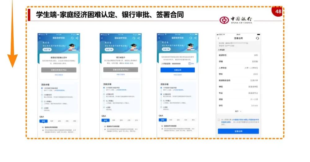 第5步:经过县级学生资助管理部门和经办银行审批后,学生通过手机银行签订合同。