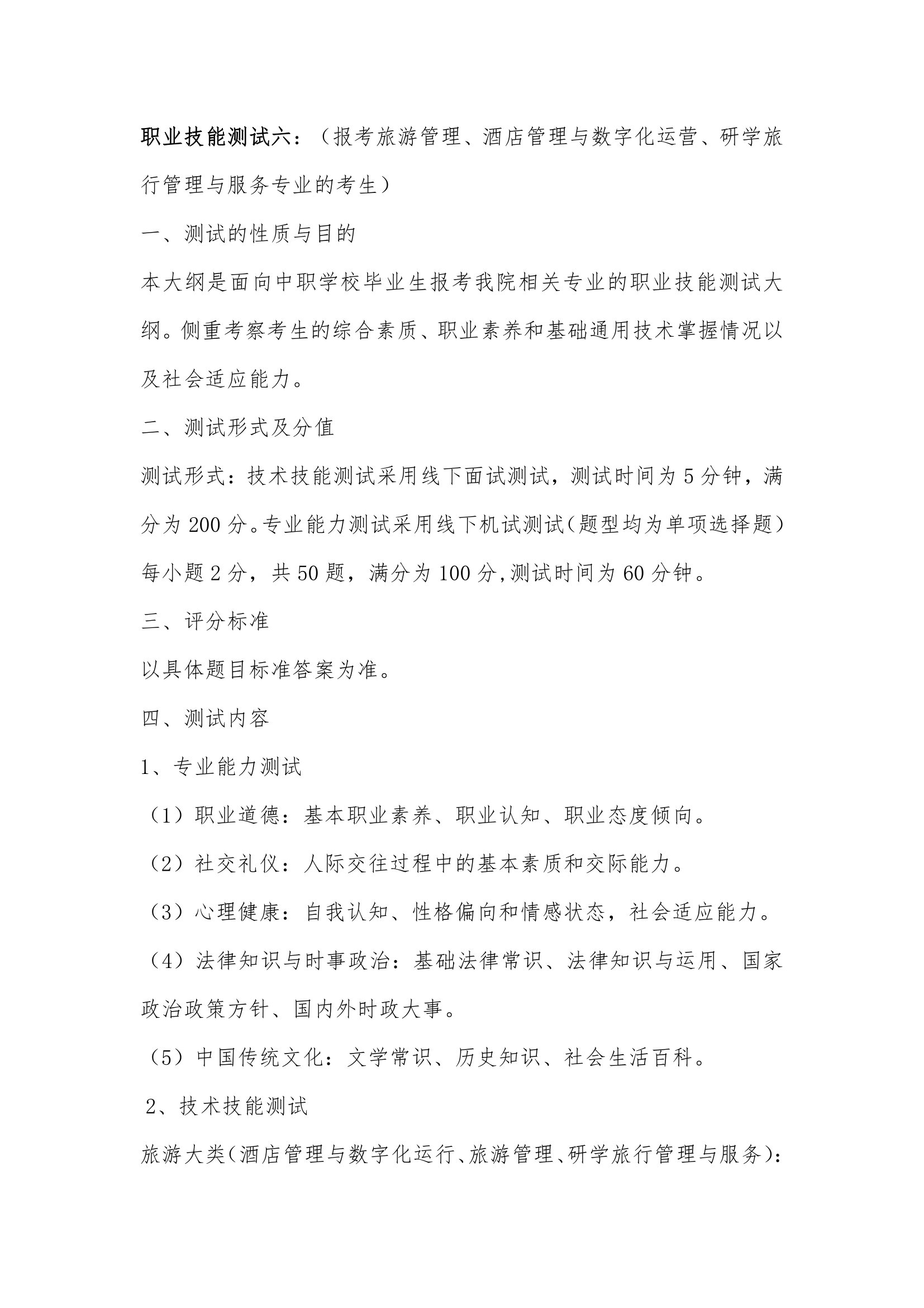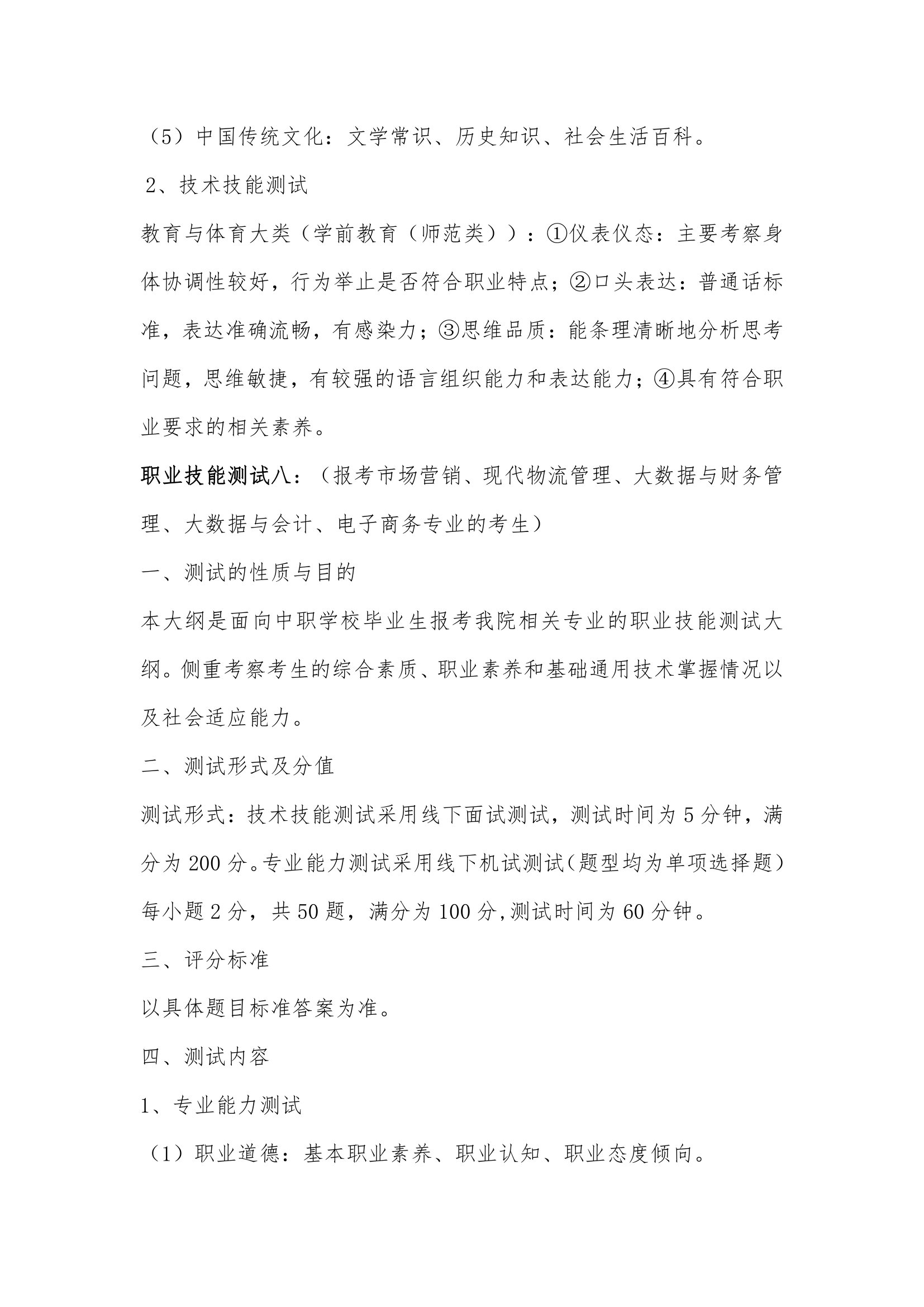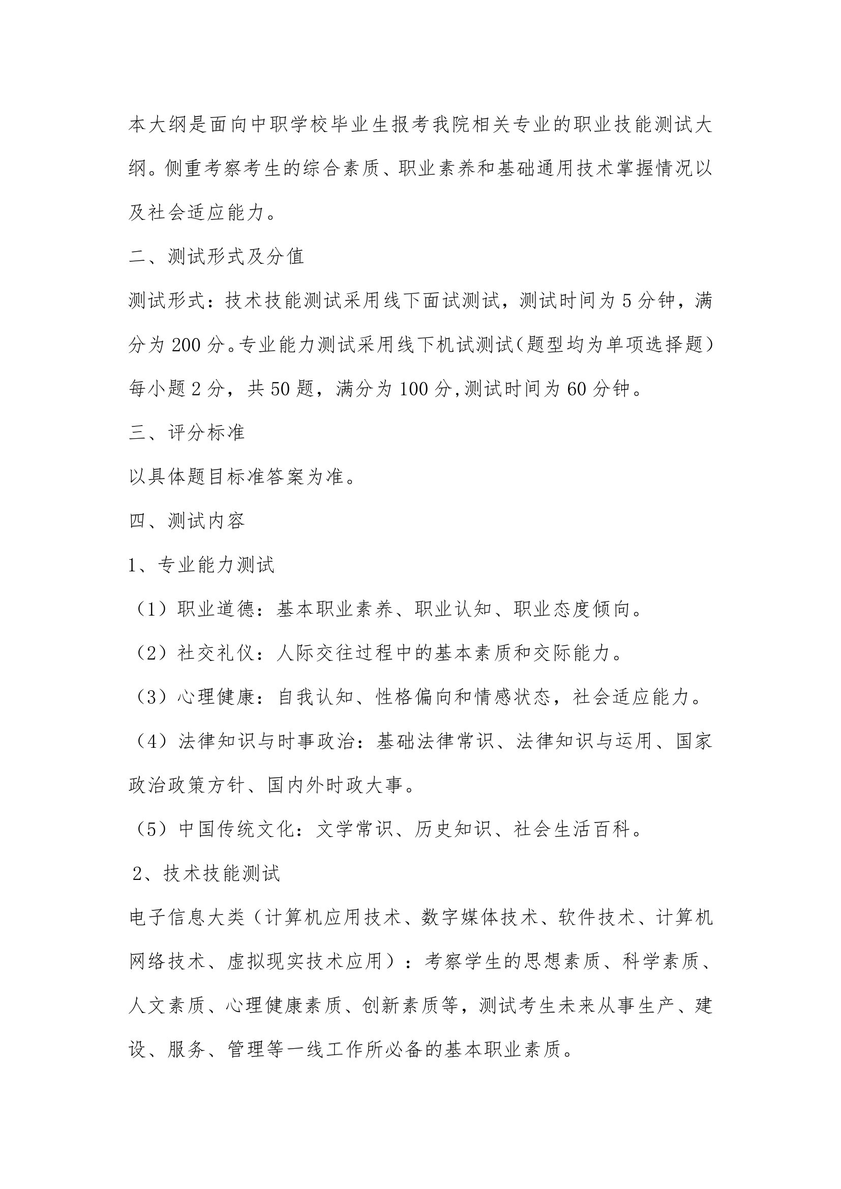 2024年分类招生测试大纲