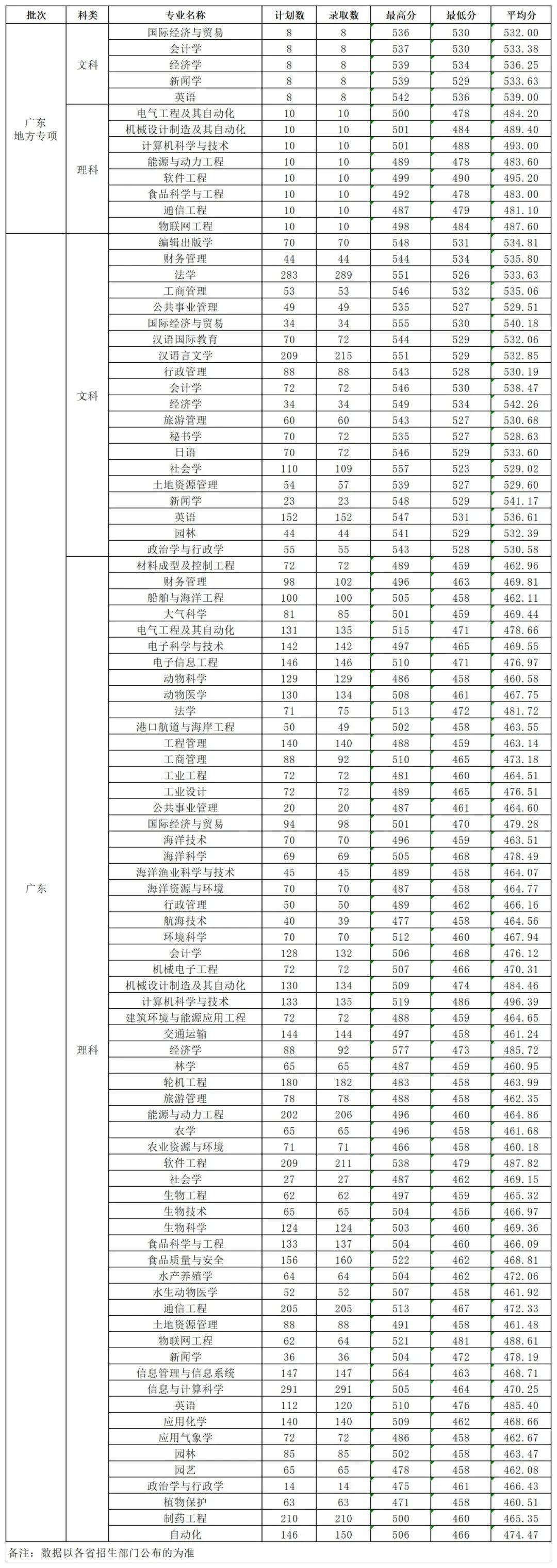 2019年广东省普通文理科录取情况