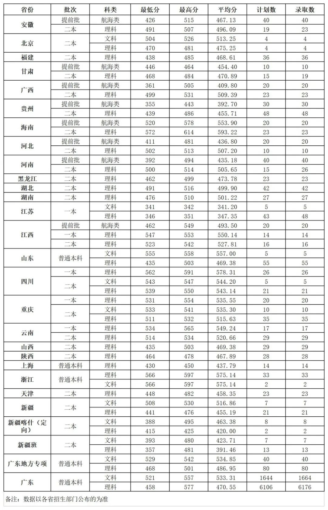 2019年普通本科及航海类录取情况