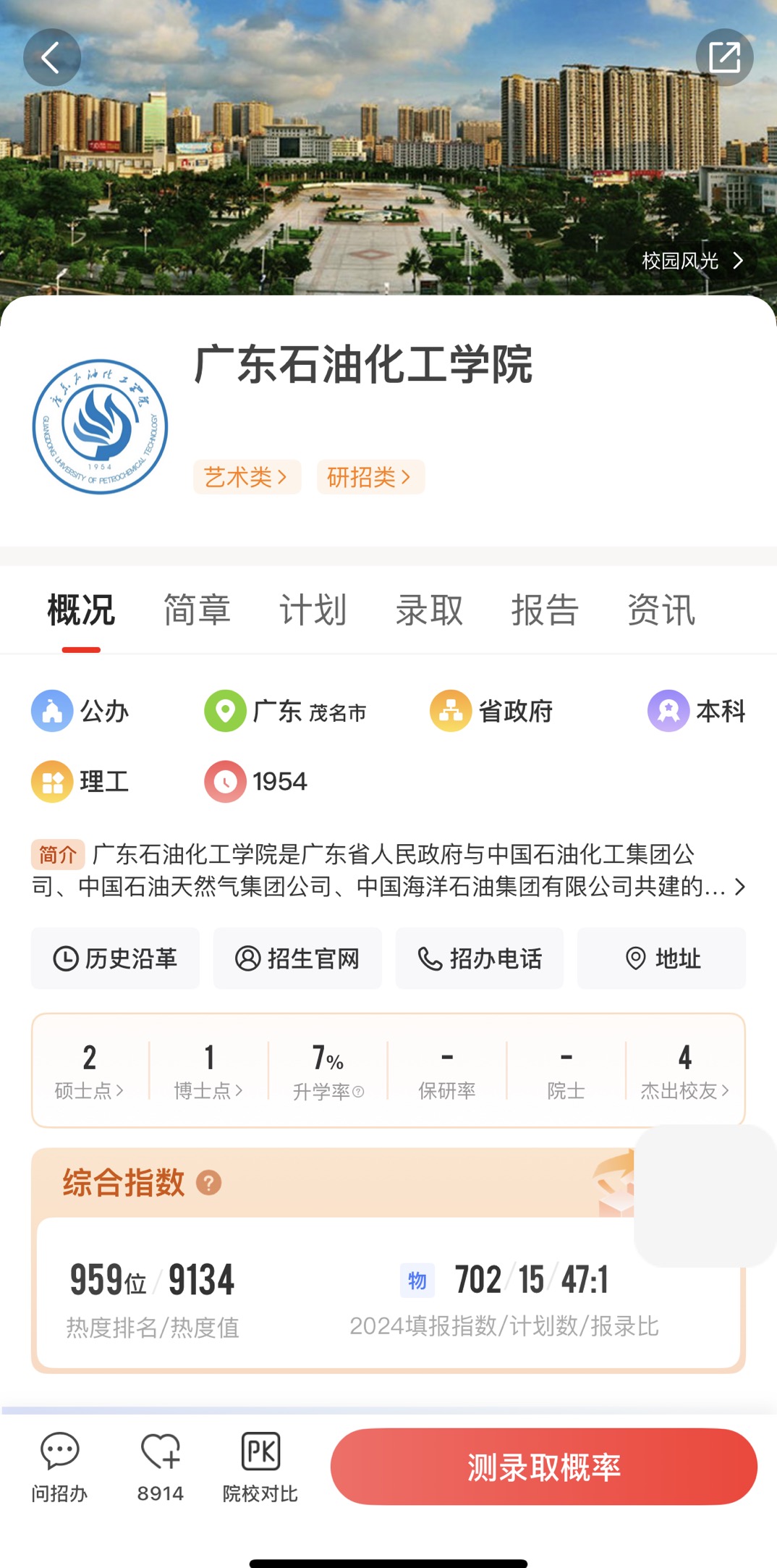 广东石油化工学院是华南地区唯一石油化工特色公办本科高校,由广东省政府与三大石油央企共建,属教育部“卓越工程师计划”试点、广东省高水平理工科大学,具备本硕博人才培养体系。