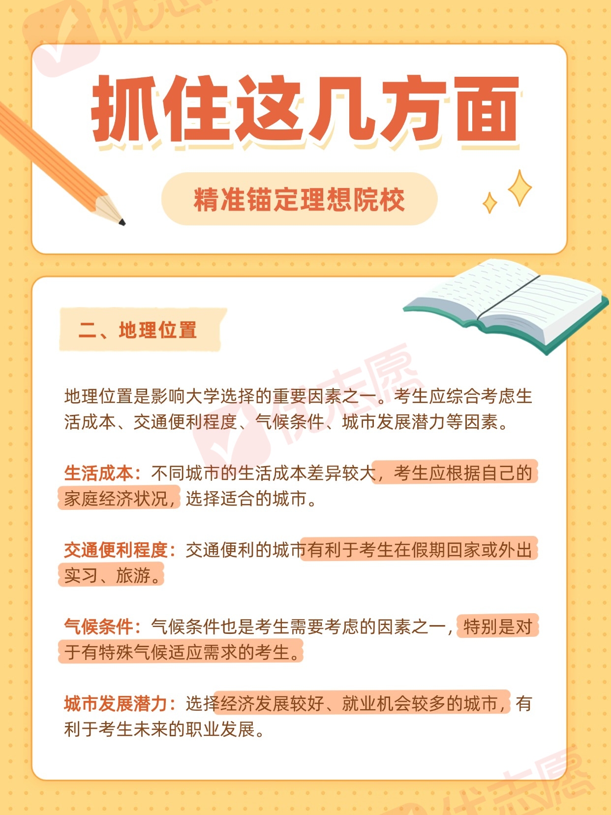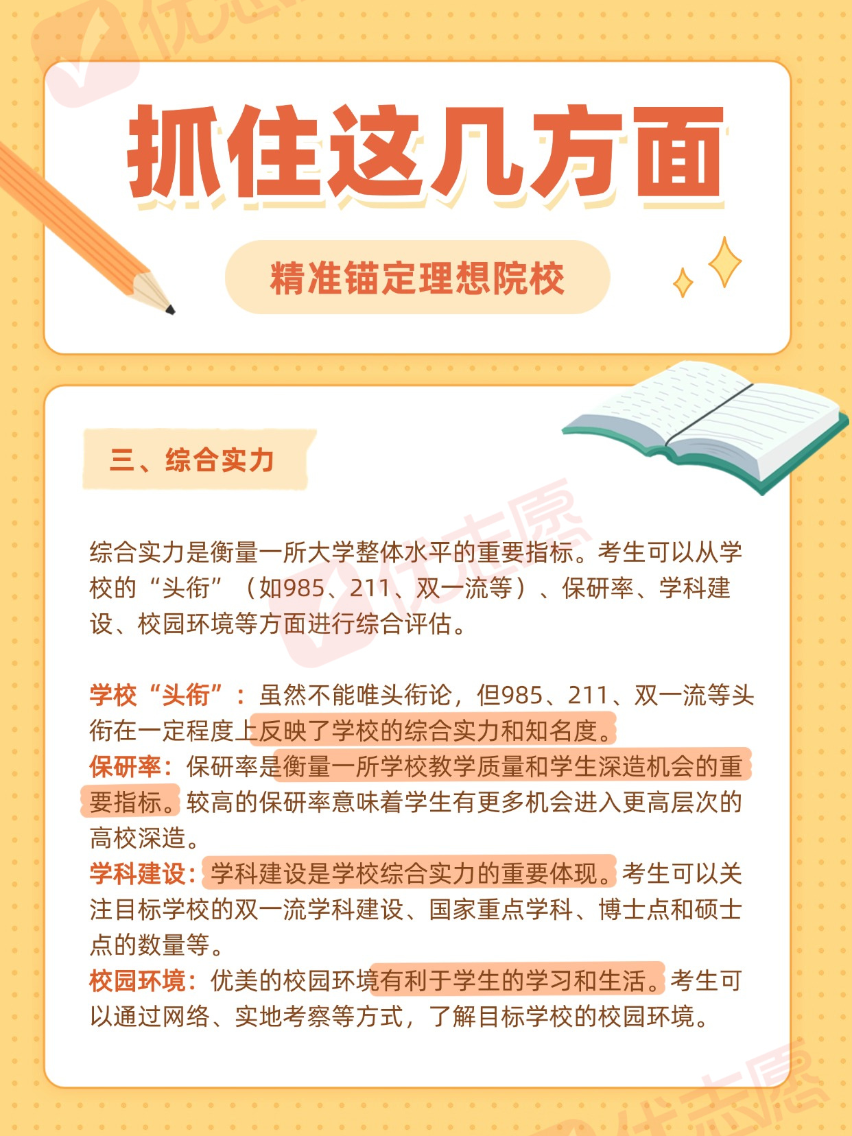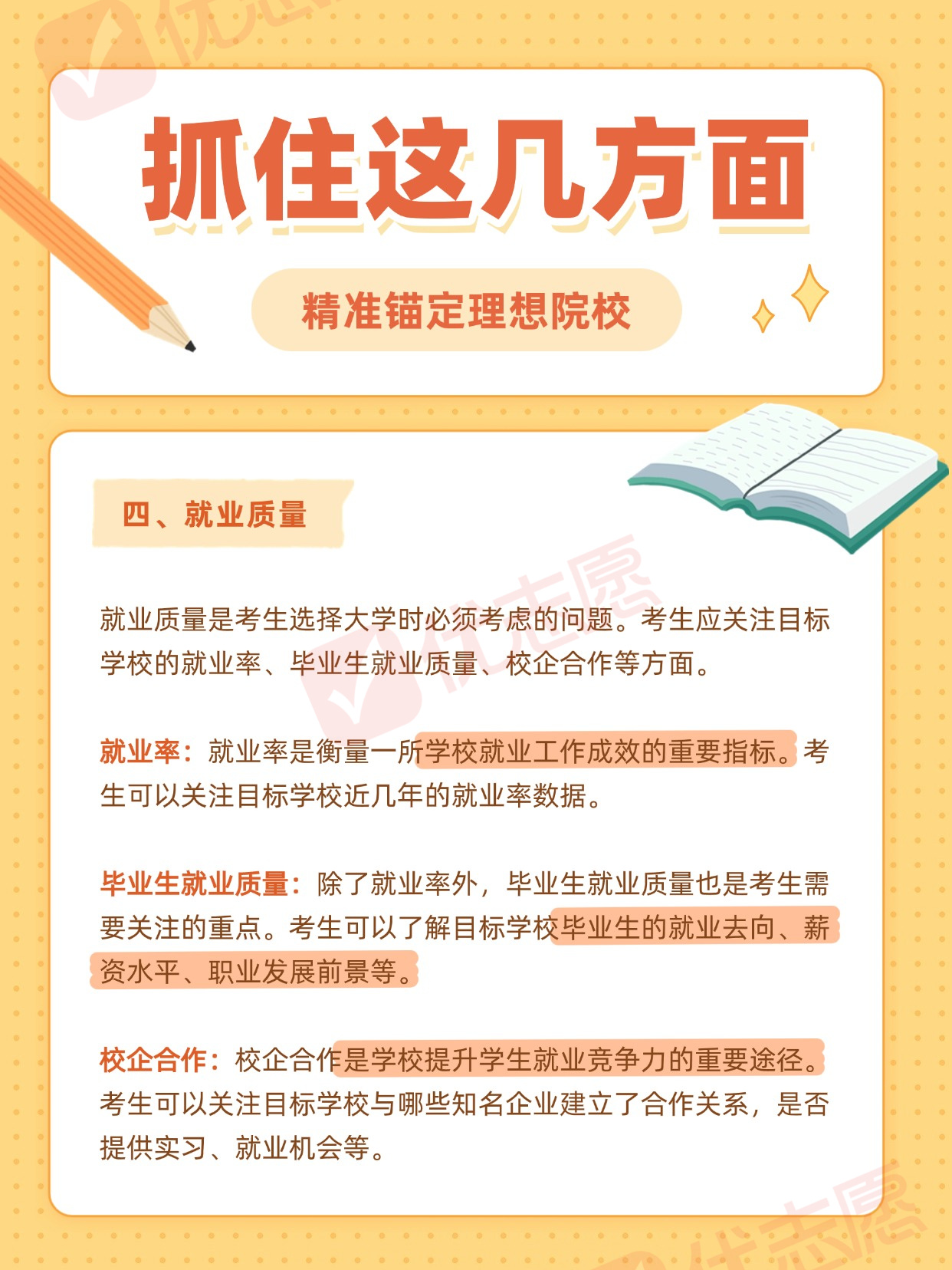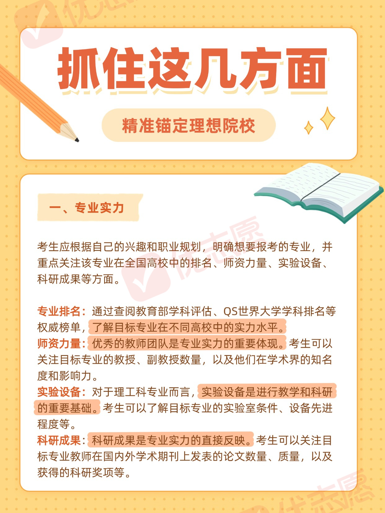 选择一所适合自己的大学对于个人的未来发展具有深远意义。为了确保自己能够进入理想的大学,高考生在选校过程中,需要从多个方面进行全面分析。下面是优志愿整理的高考志愿填报择校指南,一起了解!更多择校技巧,高考志愿填报干货、高考资讯,可以下载优志愿app进行查看