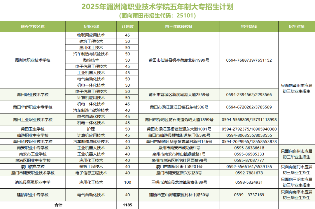 3、五年专招生录取工作由各联办中职学校负责,具体请咨询上表中对应的各中职校招生热线。