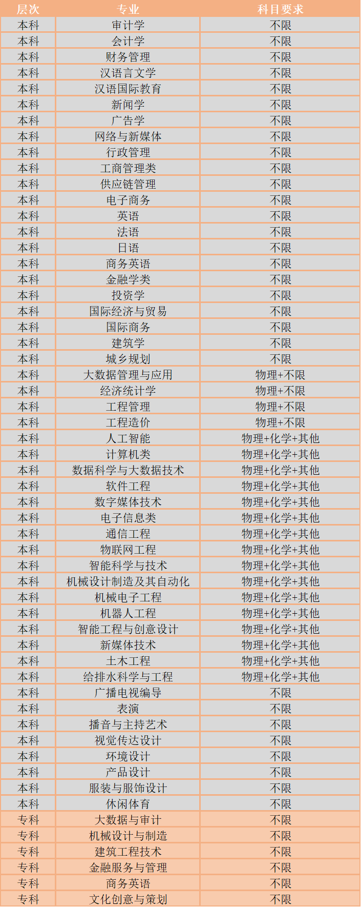 各省各市具体招生专业和选考科目要求以当年各省招生专业目录及各省考试网站公布为准