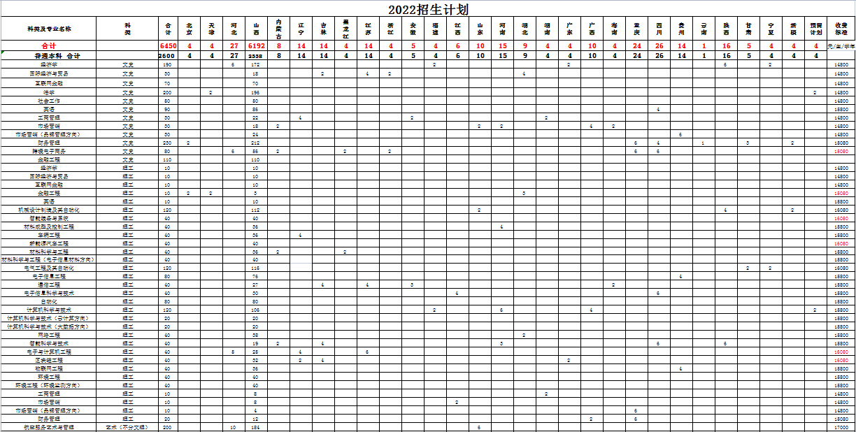 2022年招生计划