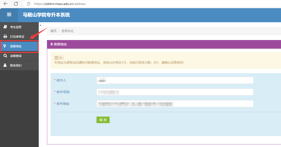 1.进入马鞍山学院招生中心官网(http://zs.masu.edu.cn/),并点击专升本招生系统(https://zsbbm.masu.edu.cn/login)