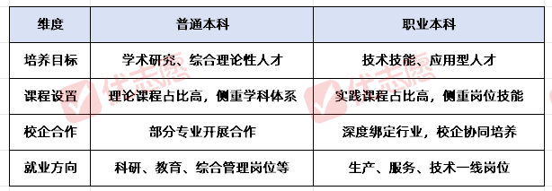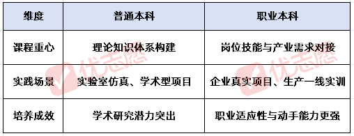 在大众传统认知里,“本科”常与“学术研究”挂钩,“职业教育”易被视为“次优选择”。但随着产业升级与高等教育改革,以“技术技能培养”为核心的职业本科崛起,与普通本科形成“学术与技能并行”的双轨格局。本文将从招生命名、证书效力、学习侧重、升学路径及报考策略等维度解析两者差异,助考生家长跳出“学历偏见”,务实选择适配的成长路径。