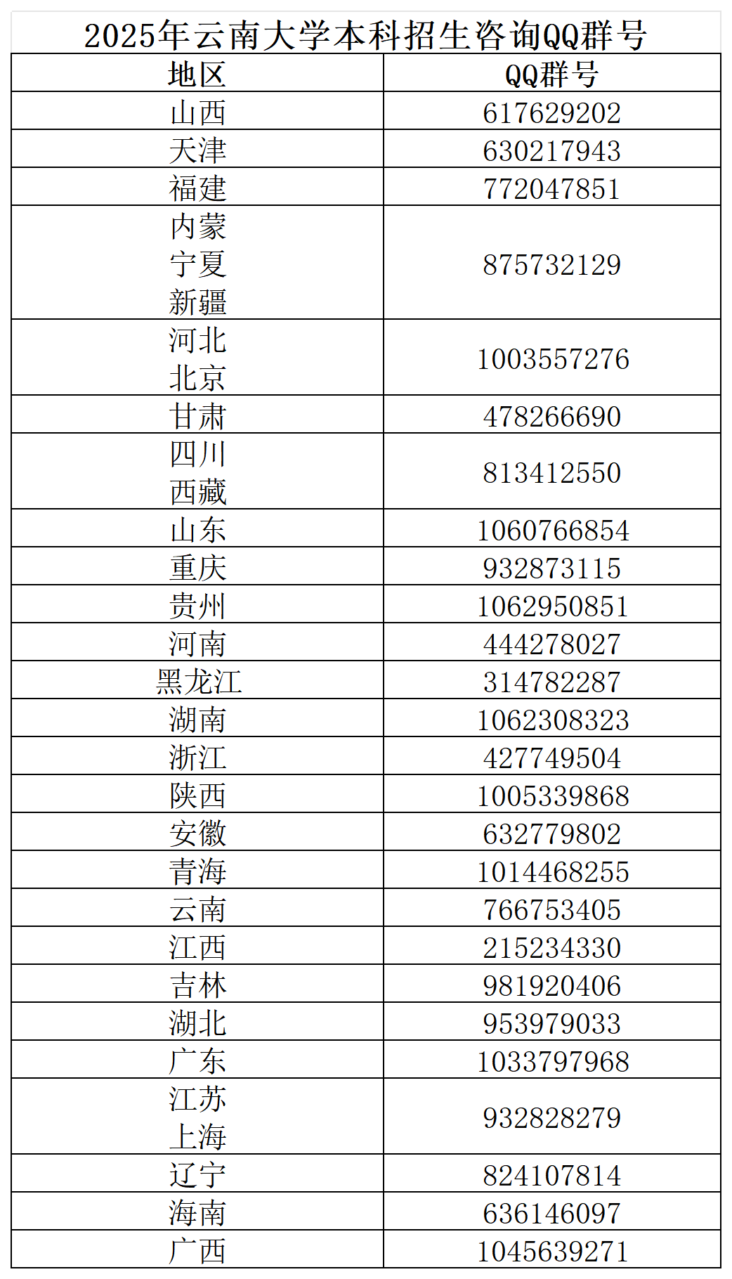 2025年云南大学本科招生咨询QQ群号