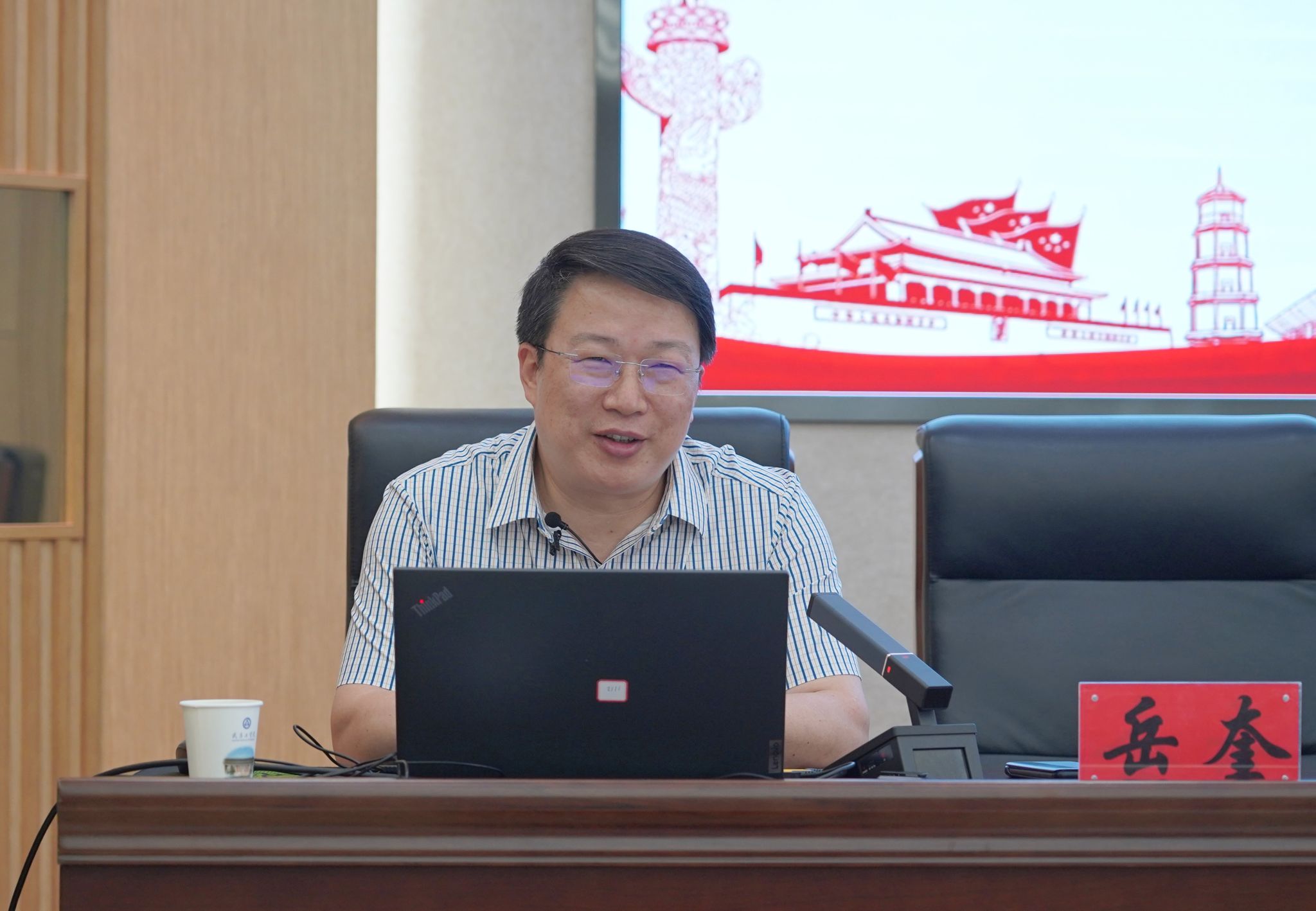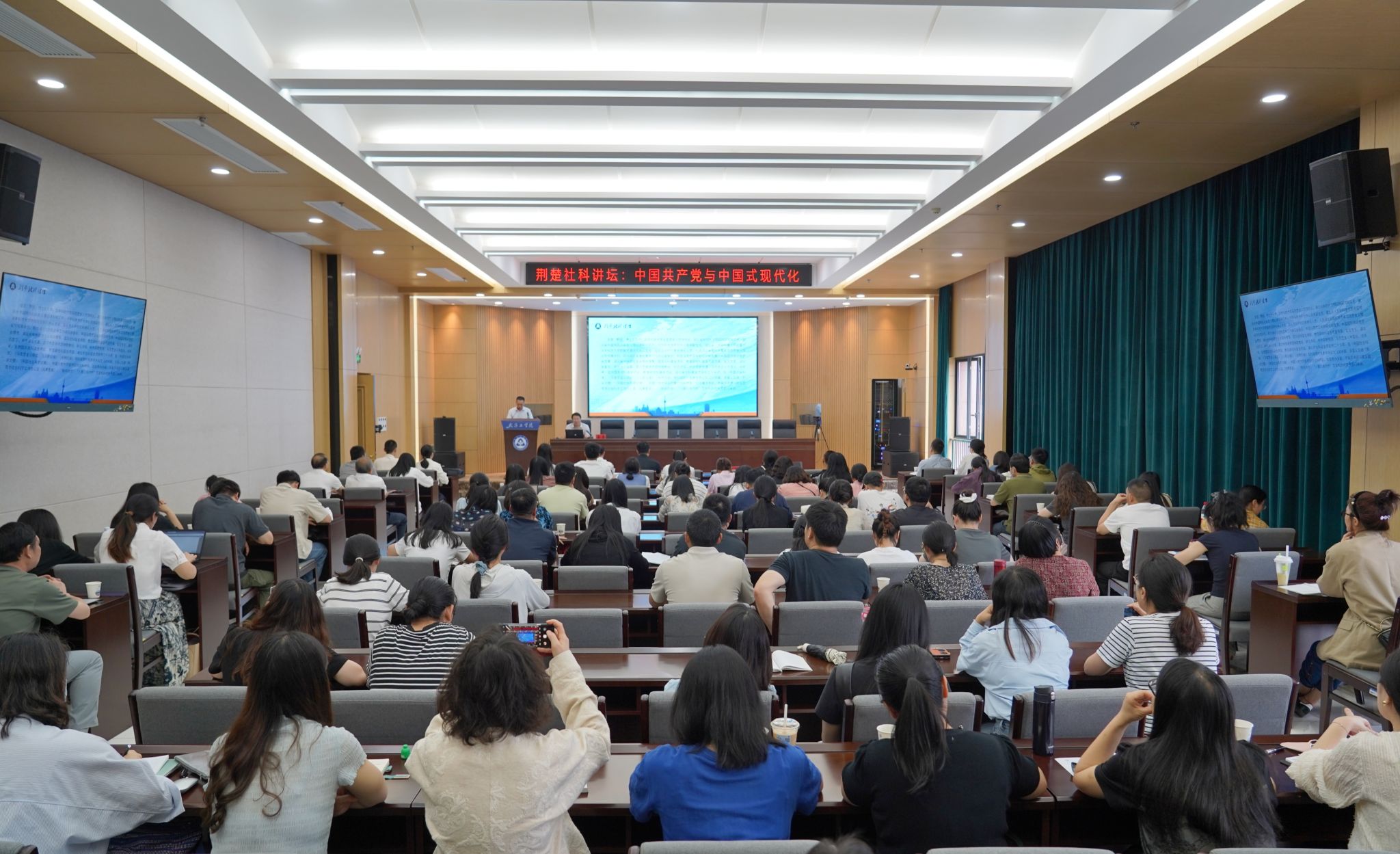 本网讯(通讯员 钟雨泽)5月28日,由湖北省社科联主办,武昌工学院、荆楚网(湖北日报网)联合承办“荆楚社科讲坛”在学校永泽楼五楼会议厅举行。华中科技大学马克思主义学院院长、博士生导师岳奎受邀作题为《中国共产党与中国式现代化》的专题报告。全体党支部书记、思政课教师、辅导员及学生党员等逾300人现场聆听。报告会由马克思主义学院院长何春涛主持。