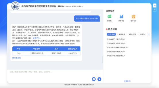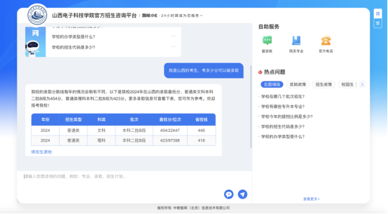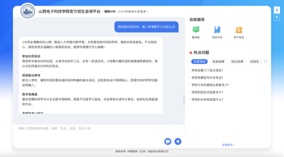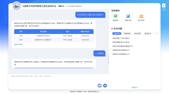 【山西电子科技学院】的智能招生问答系统已经华丽大变身