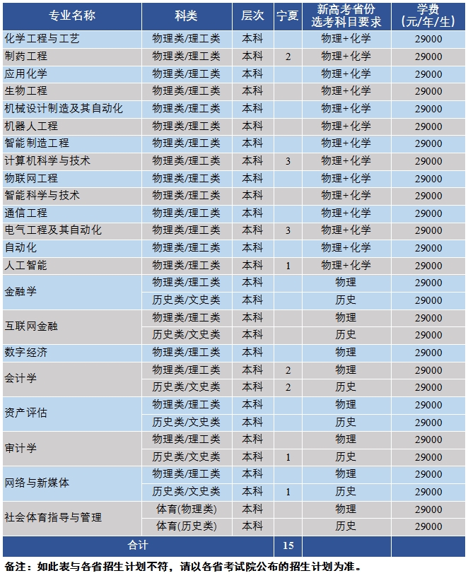 沈阳科技学院2025年宁夏回族自治区分专业招生计划